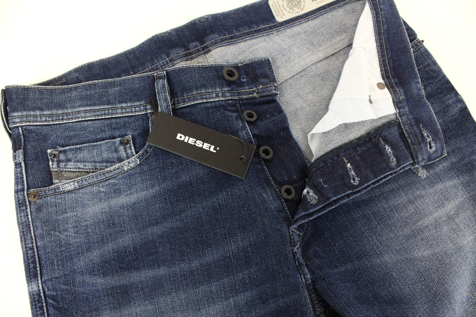 DIESEL Tepphar R39M0 vyriški džinsai W30/L32 Slim Carrot Fit medvilniniai skalbti mėlyni džinsai