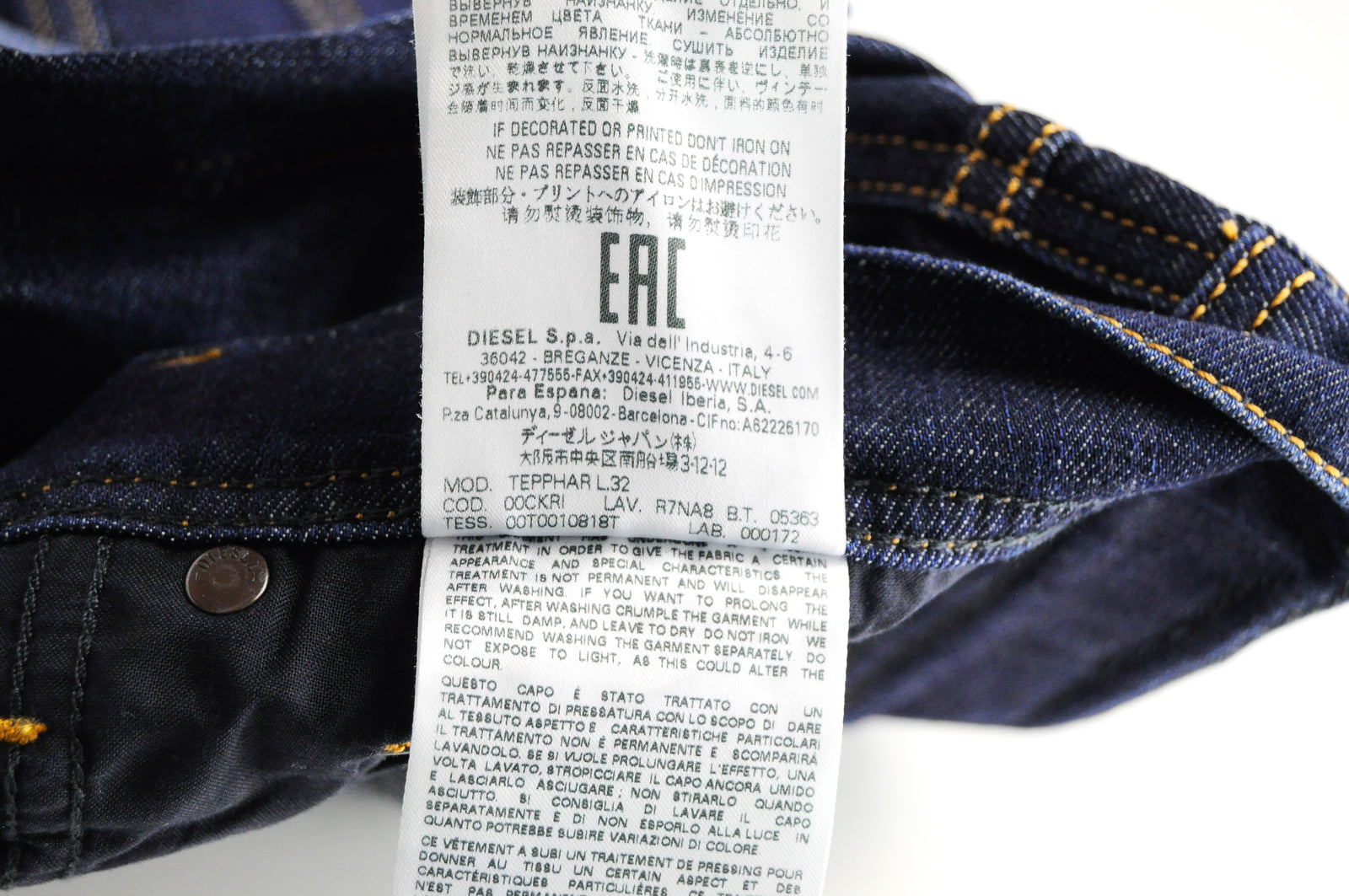 DIESEL Tepphar R7NA8 vyriški mėlyni apdriskę ploni morkų rašto tamprūs džinsai W28/L32
