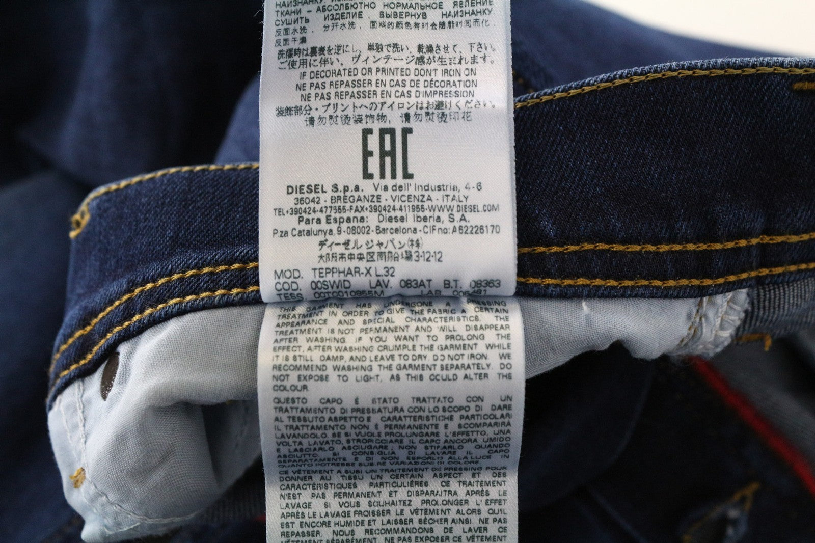 DIESEL Tepphar-X 083AT vyriški W26/L32 berniukiški mėlyni ploni-morkų spalvos sendinti tamprūs džinsai