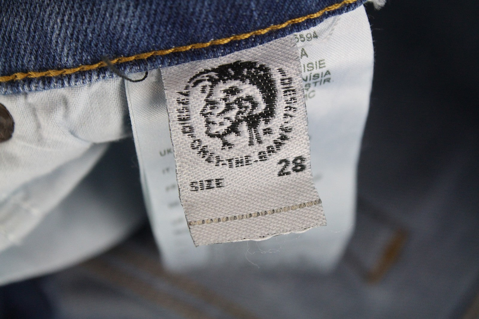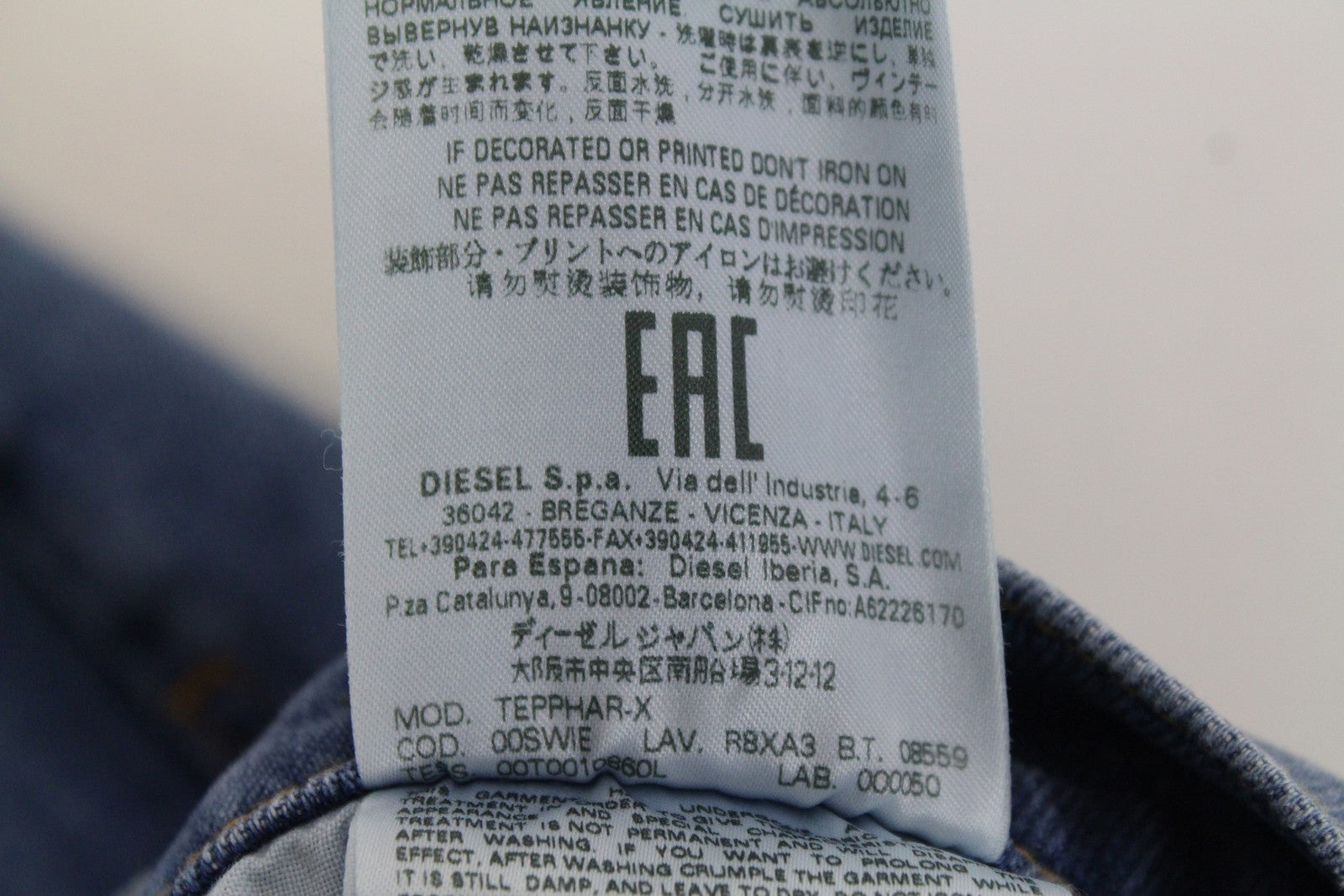 DIESEL Tepphar-X R8XA3 vyriški mėlyni džinsai W28/L34 Slim Carrot Fit skalbti tamprūs džinsai