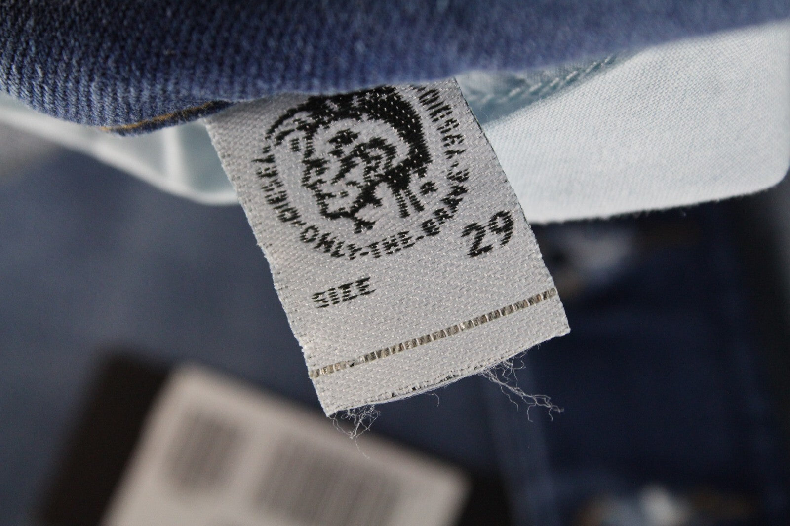 DIESEL Tepphar-X R8XA3 vyriški mėlyni džinsai W29/L34 ploni morkų rašto medvilniniai tamprūs džinsai