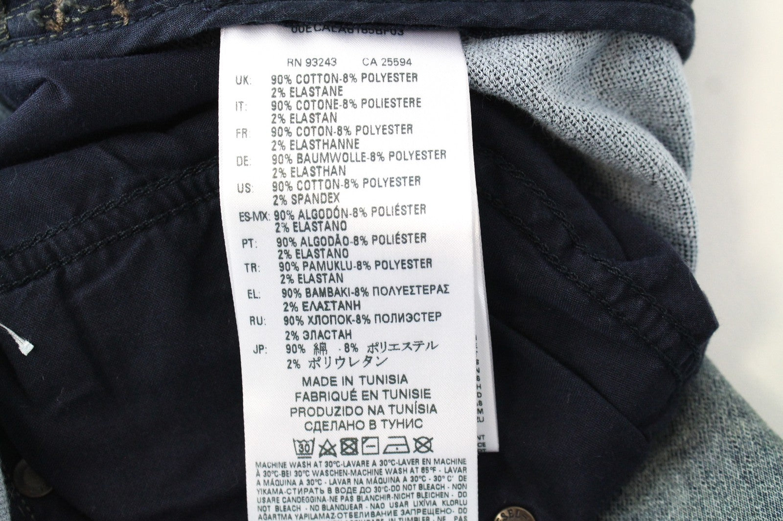 Material : 90% Cotton, 8% Polyester, 2% Elastane