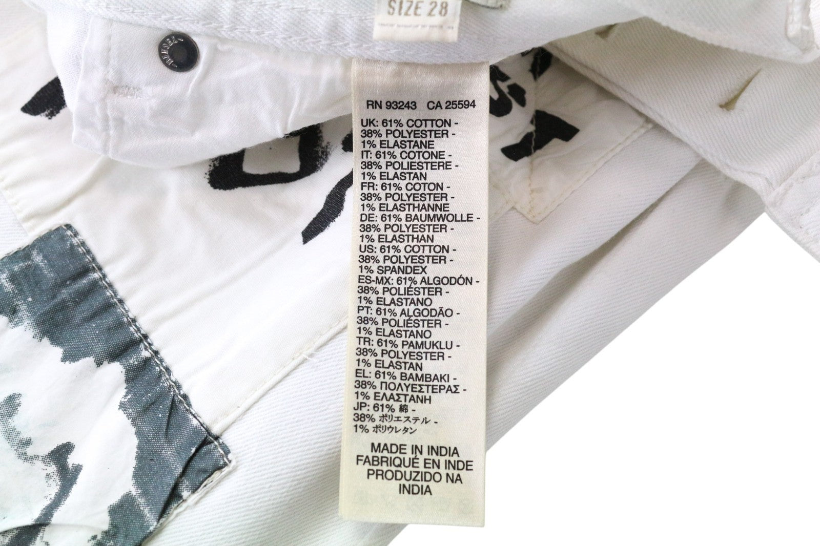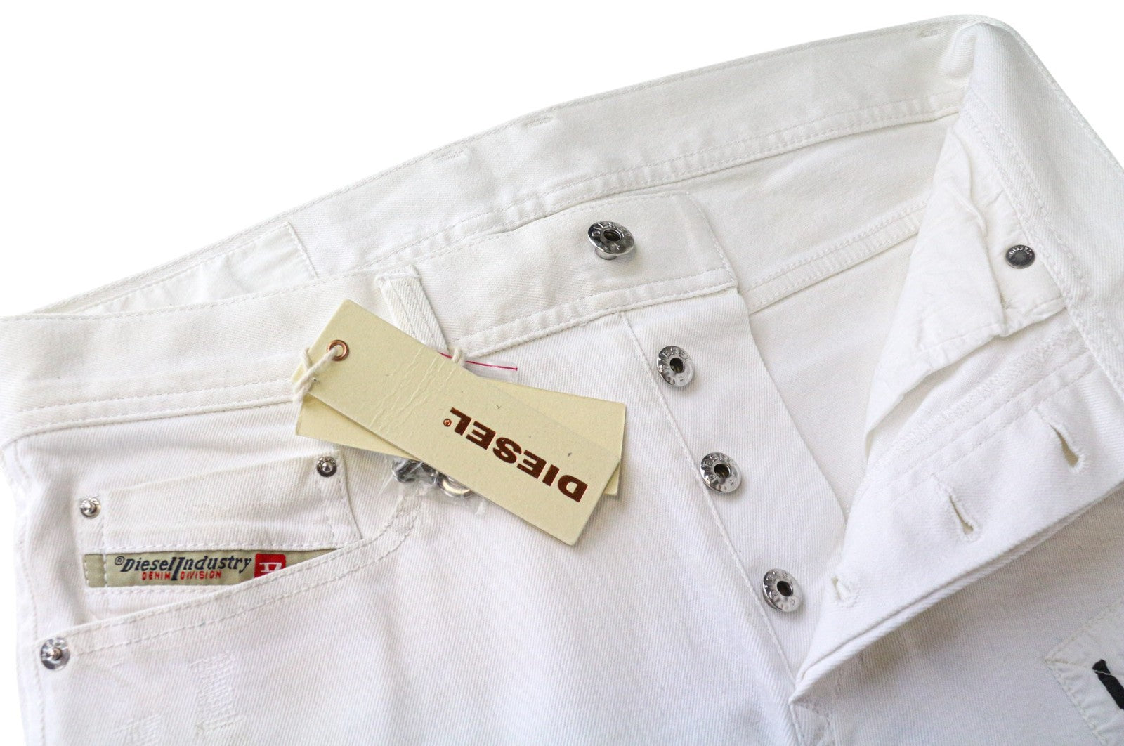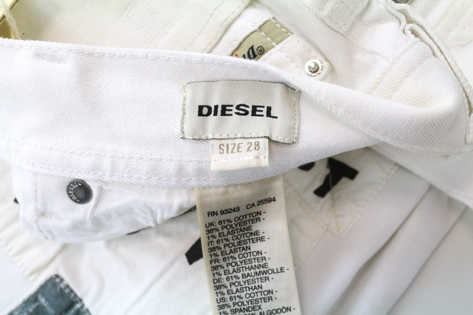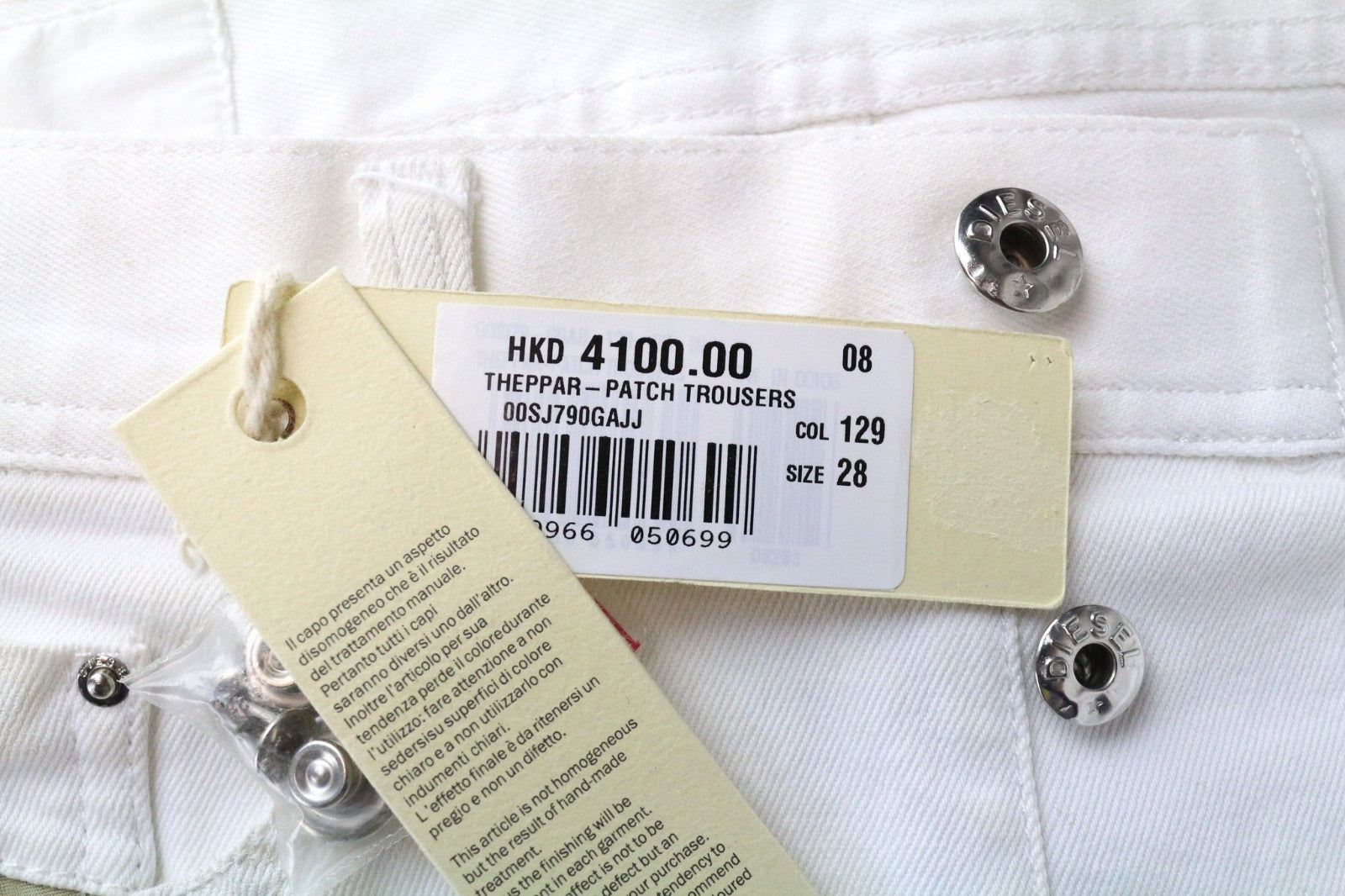 DIESEL Theppar vyriški džinsai W28 balti medvilniniai tamprūs džinsai su lopais ir dėmėmis