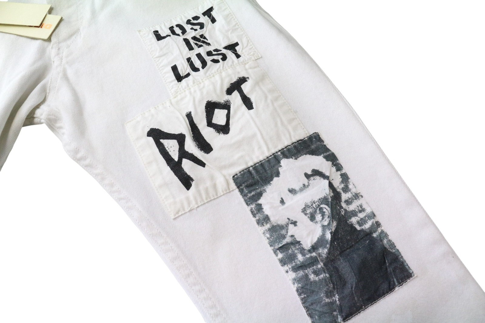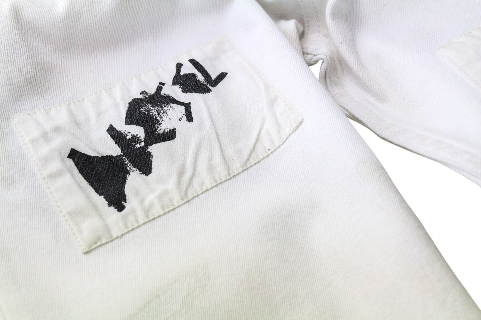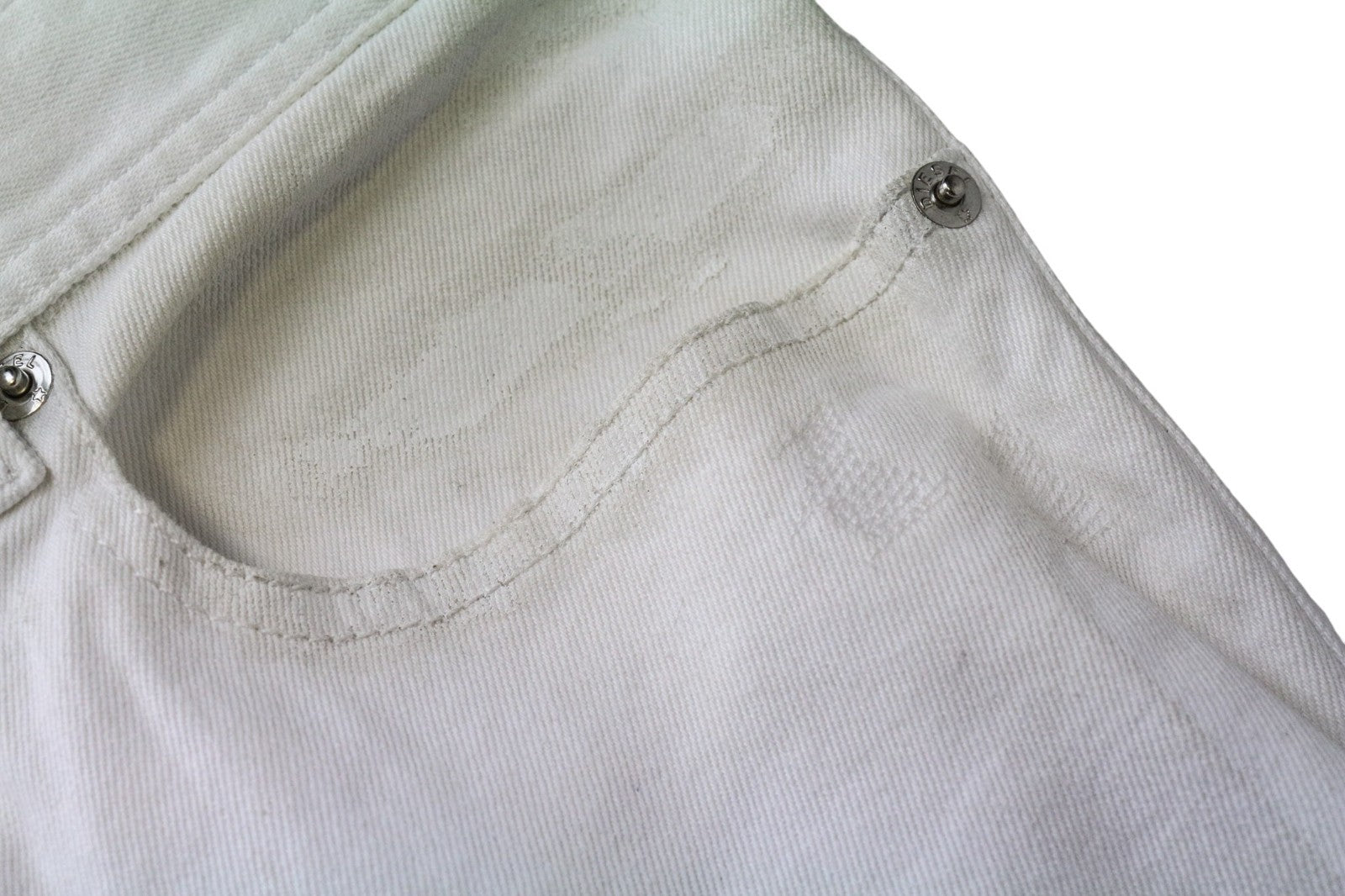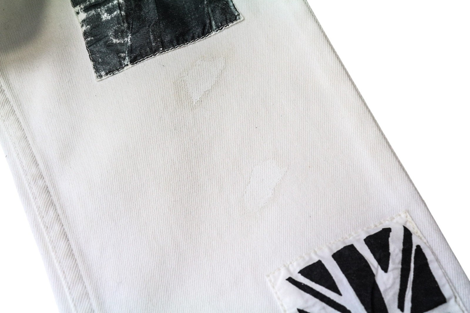 DIESEL Theppar vyriški džinsai W28 balti medvilniniai tamprūs džinsai su lopais ir dėmėmis