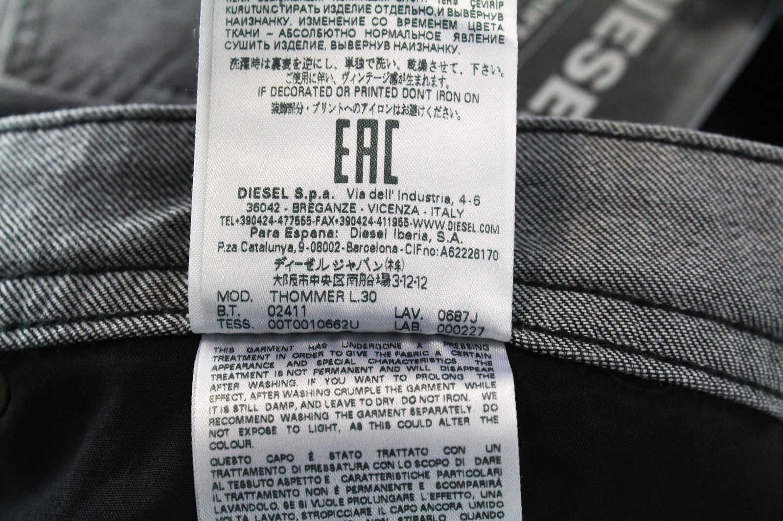 DIESEL Thommer 0687J vyriškos džinsinės kelnės W32/L30 pilkos, tamprios, plonos, su užtrauktuku.