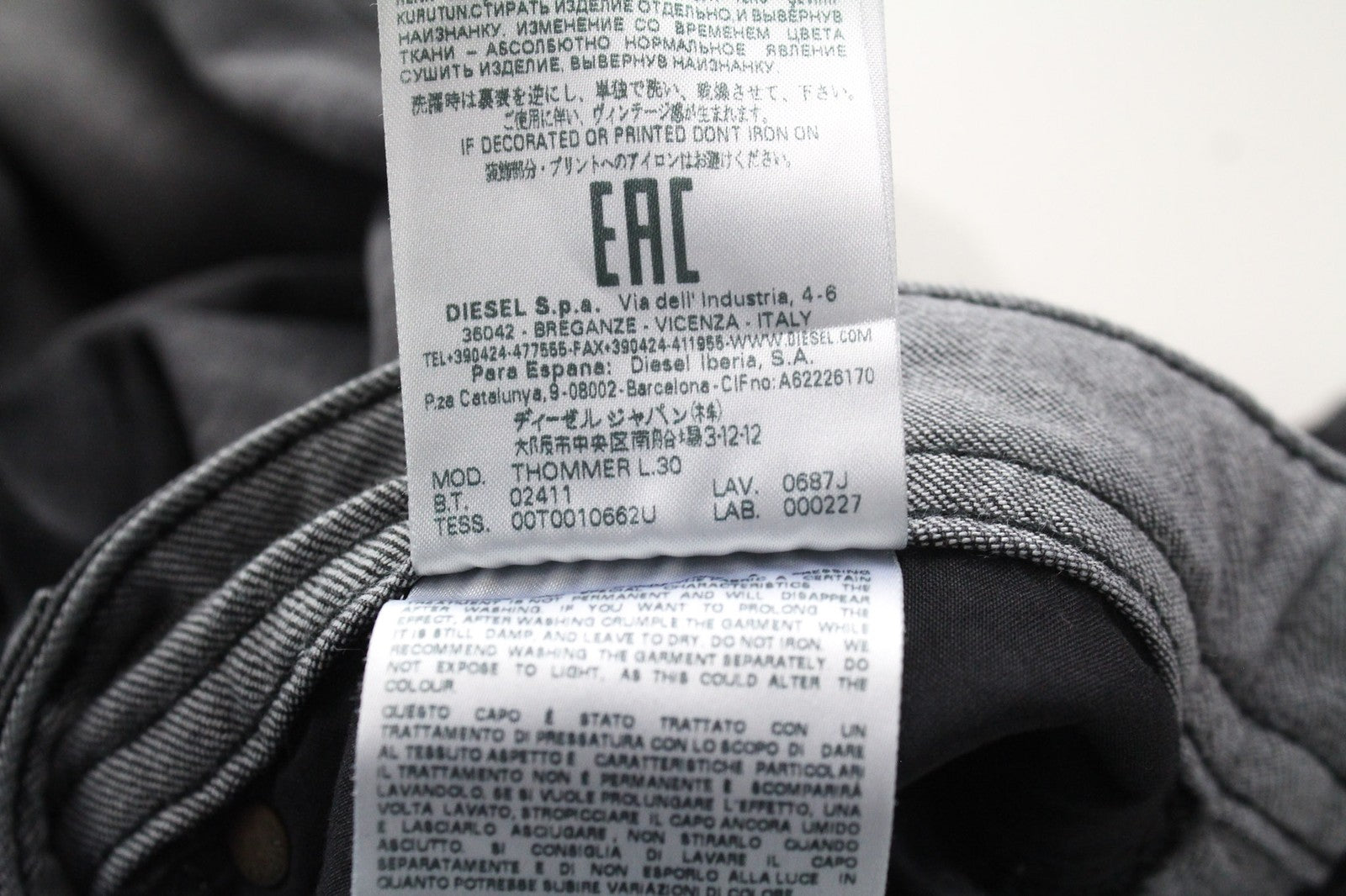 DIESEL Thommer 0687J vyriški džinsai W32/L30 Slim pilki tamprūs medvilniniai aptempti džinsai