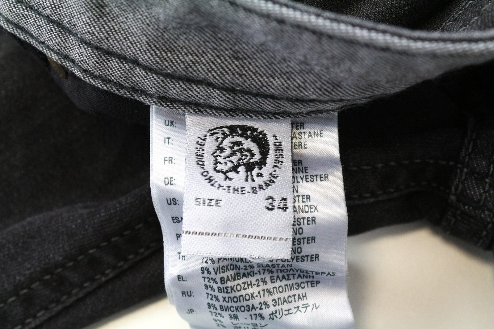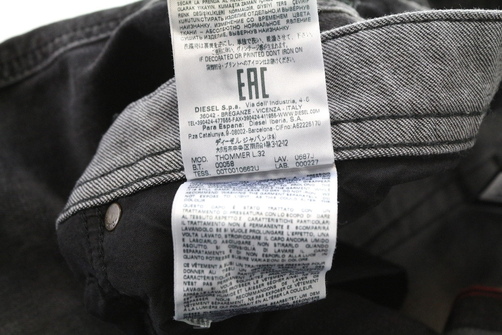 DIESEL Thommer 0687J vyriški ploni aptempti džinsai W34/L32 pilki skalbto tampraus džinso audiniai