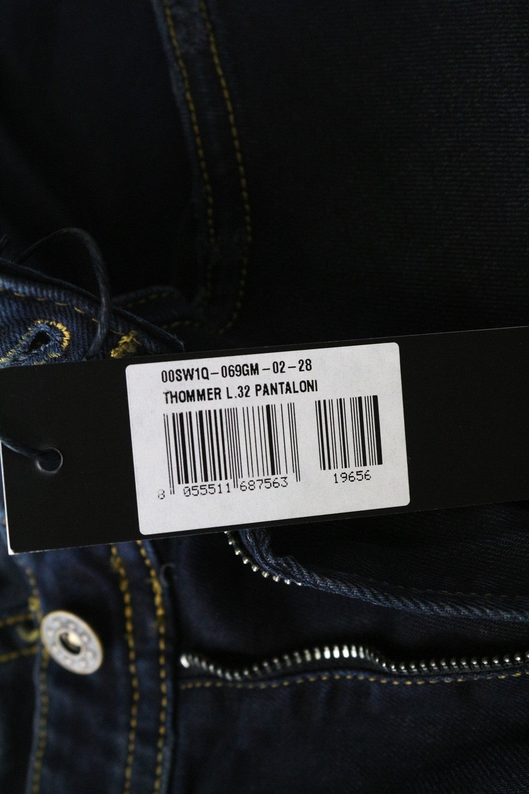 DIESEL Thommer 069GM vyriški džinsai W28/L32 mėlyni, aptempti, tamprūs, su defektais užtrauktuku