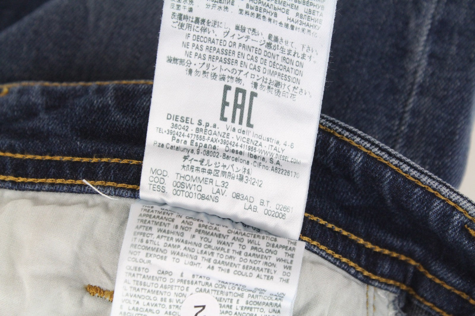 DIESEL Thommer 083AD vyriški W26/L32 tamsiai mėlyni ploni aptempti berniukiški džinsai su užtrauktuku