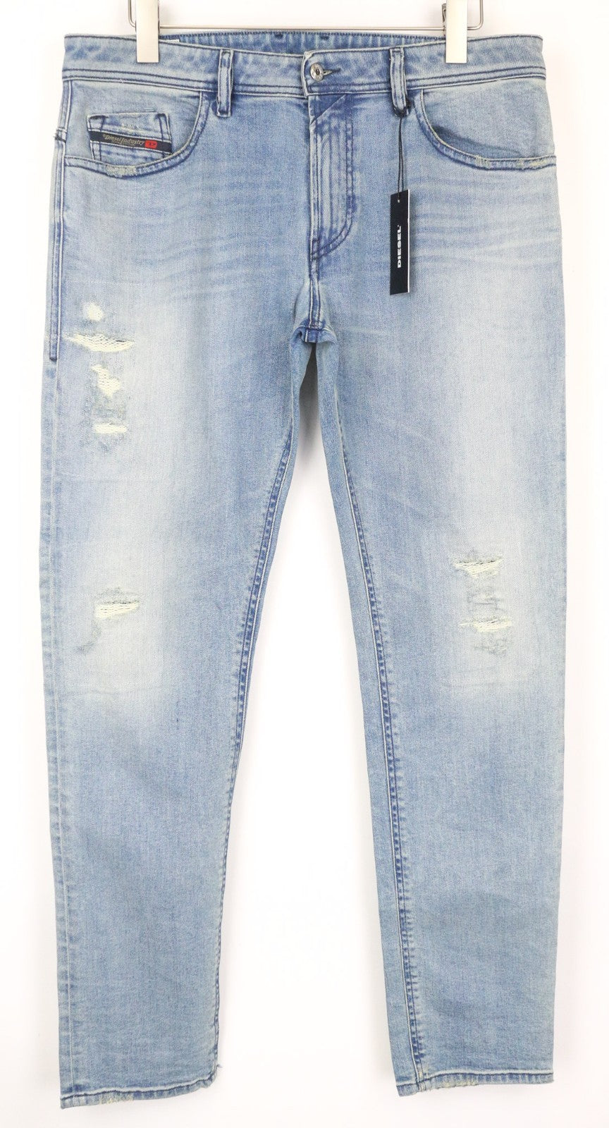 DIESEL Thommer 087AX vyriški W34 Slim džinsai su 5 kišenėmis, dirbtinio kirpimo, mėlyni.