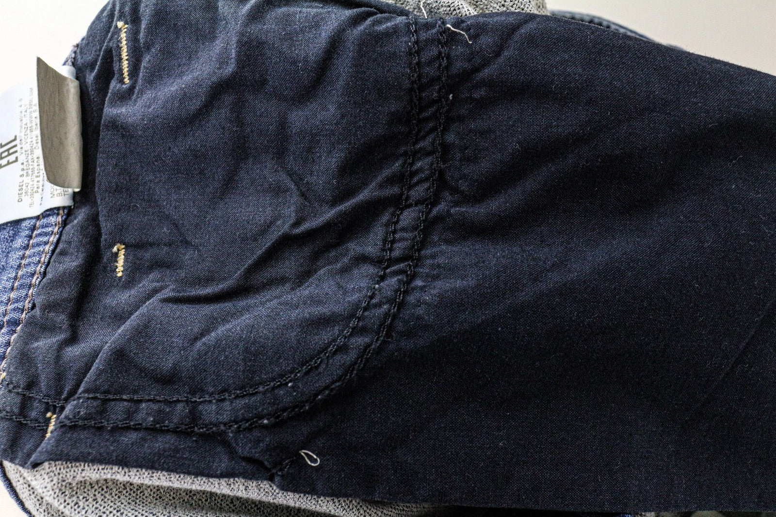 Stains on the inside. Missing drawstring. THIS IS A RARE SALES SAMPLE. Inside labels may differ. Some Diesel sizes can differ. Please, carefully check the given measurements, especially the waist. Please see added photos.