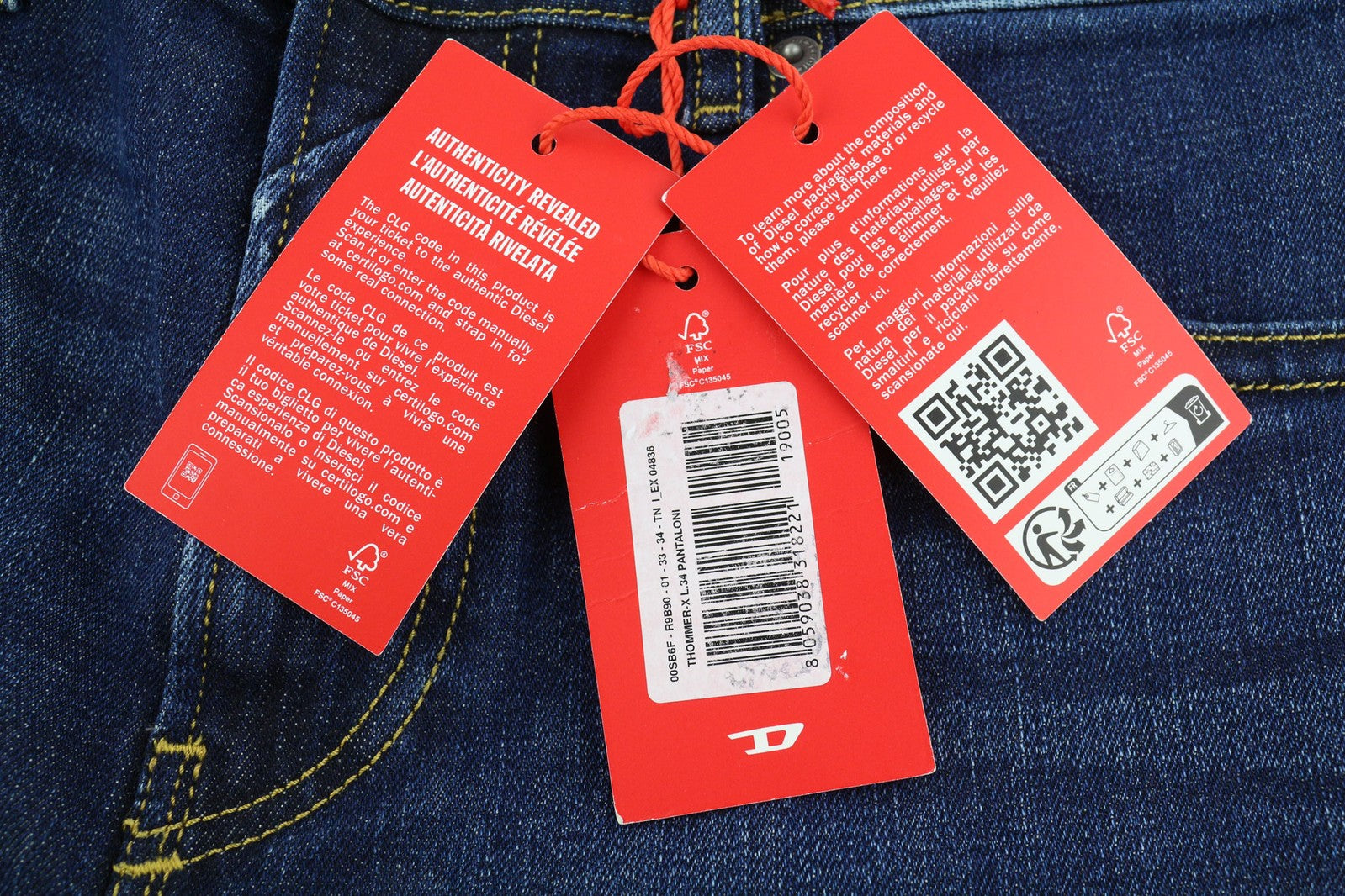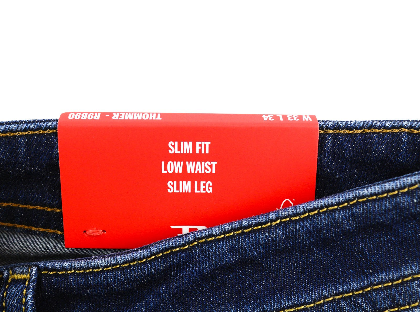 DIESEL Thommer-X R9B90 vyriški džinsai W33/L34 Slim žemo juosmens, rekomenduojama kaina – 160 €, mėlyni