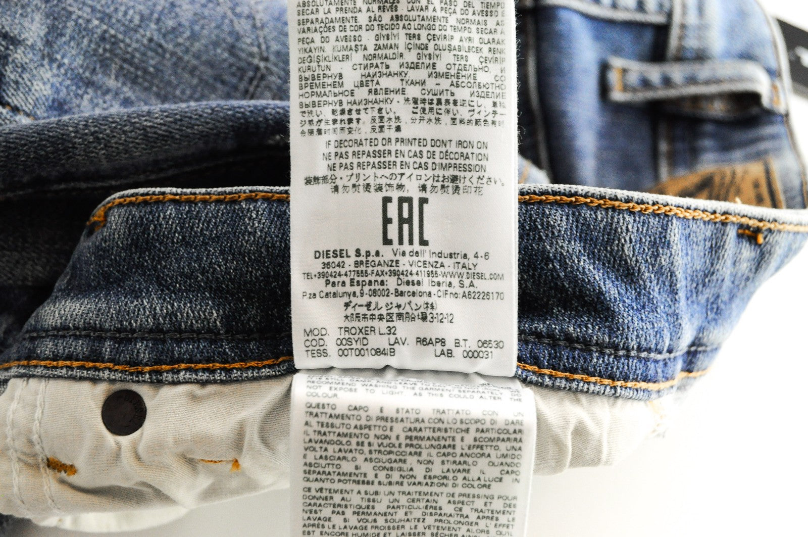 DIESEL Troxer R6AP8 vyriški mėlyni džinsai W28/L32 Slim Skinny sendinto dėmėto džinso rašto