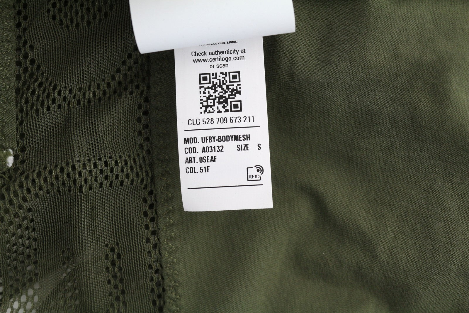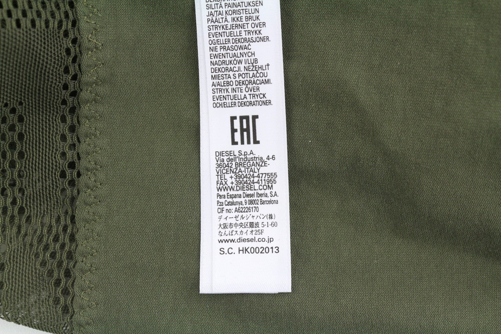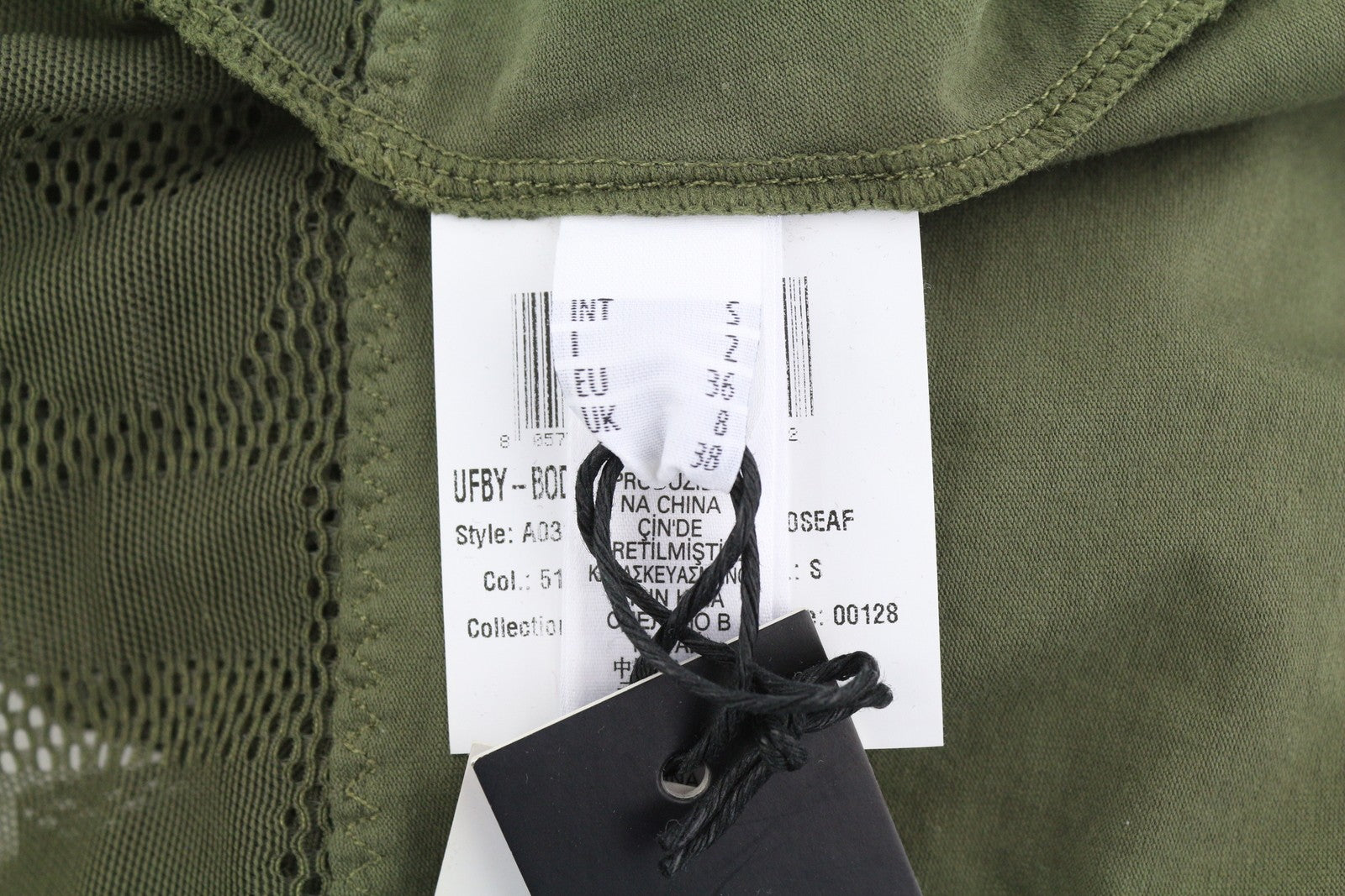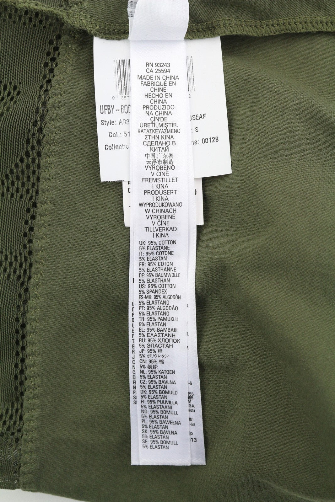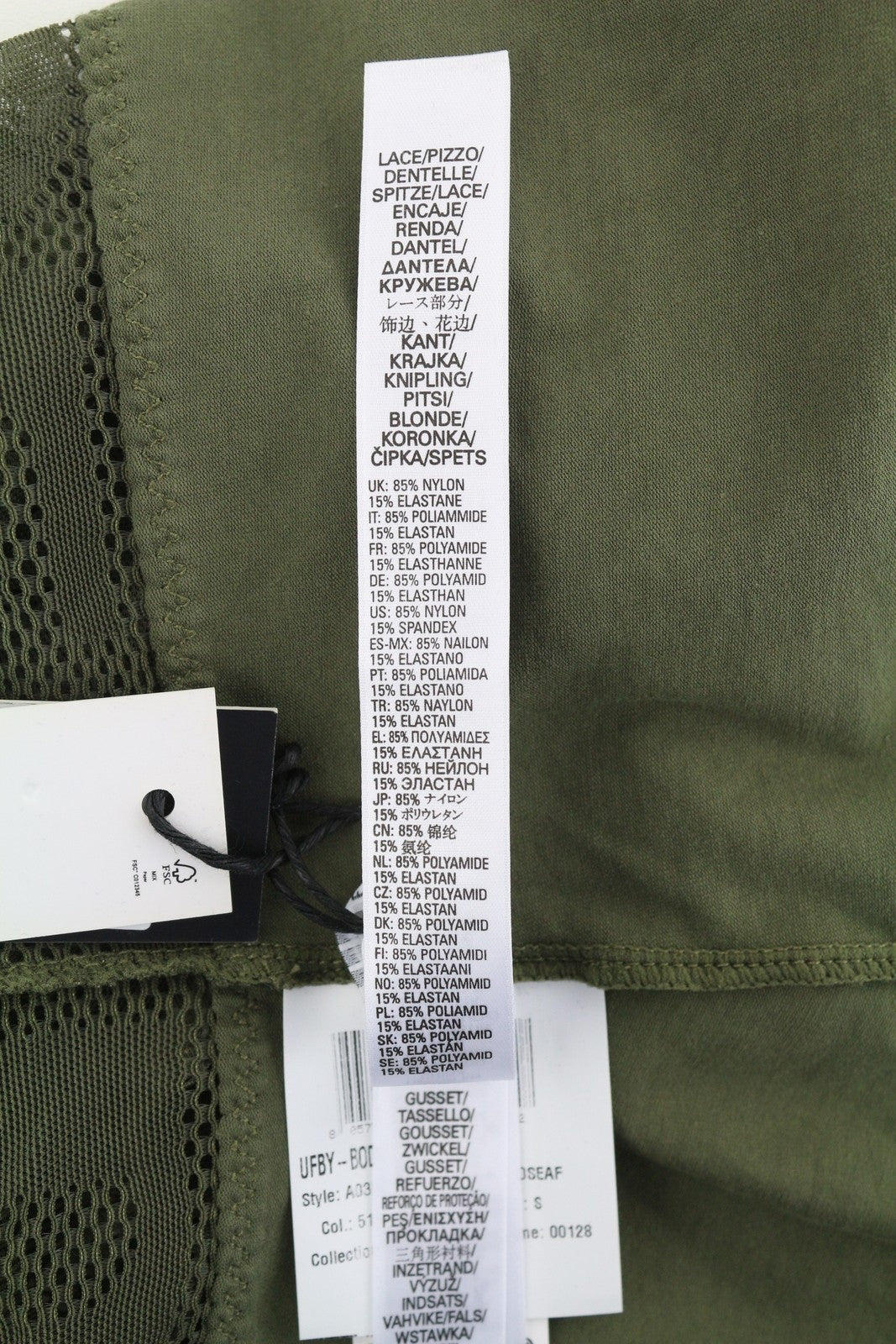 DIESEL Ufby-Bodymesh Uw moteriškas bodis S chaki spalvos be rankovių, V formos iškirpte, visiems metų laikams