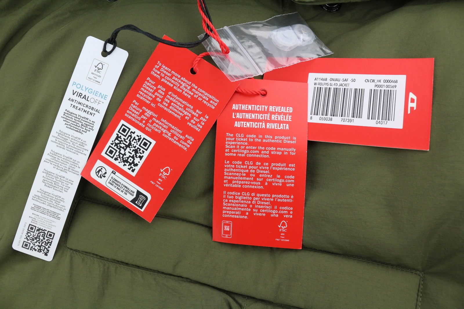 DIESEL W-Rolfys-SL-FD vyriška liemenė, 50 l, chaki spalvos, su nuimamu gobtuvu, pašiltinta, RRP 275 €