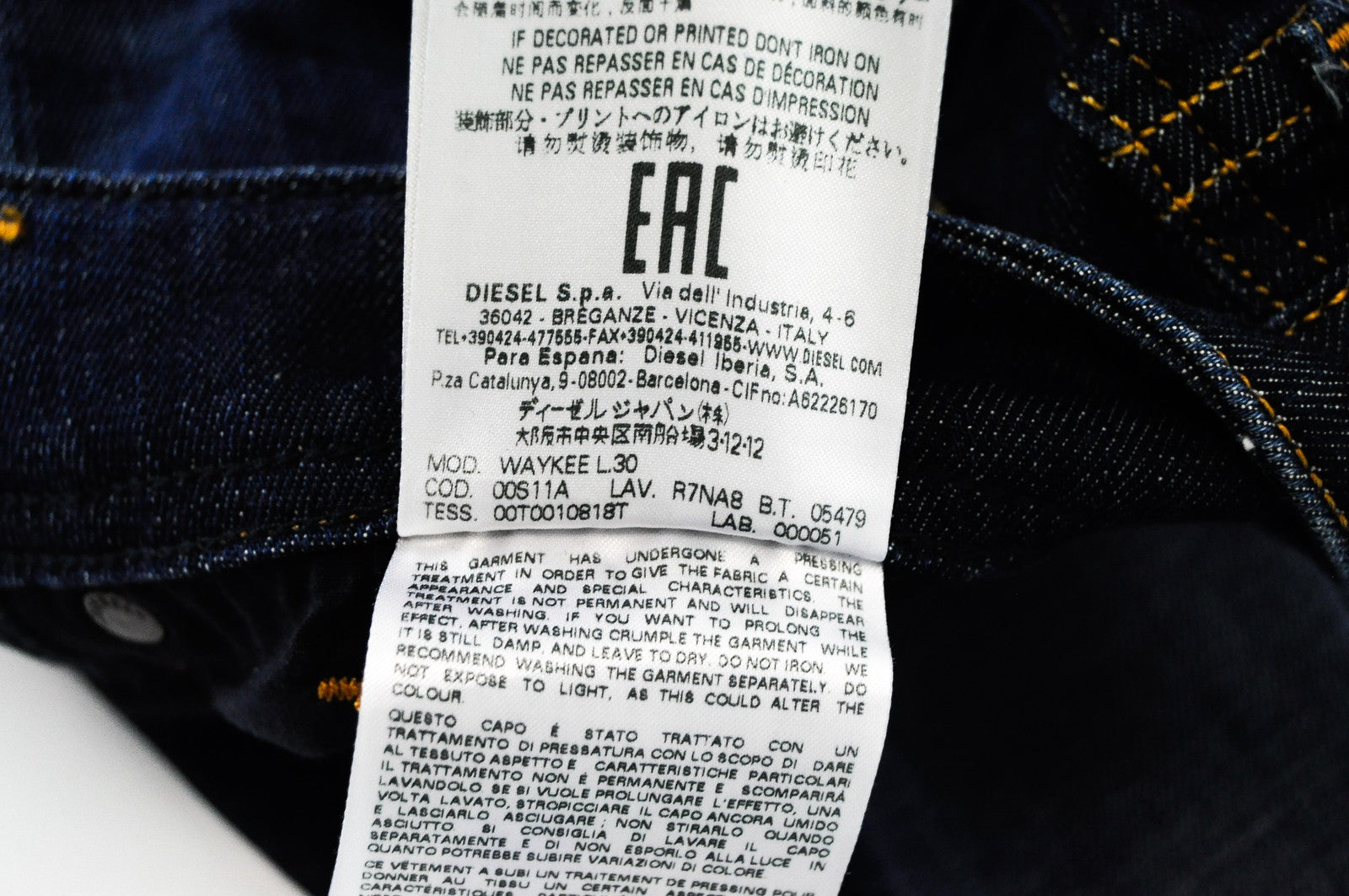 DIESEL Waykee R7NA8 Men Jeans W29/L30 Dark Blue Stretch Straight Leg Denim