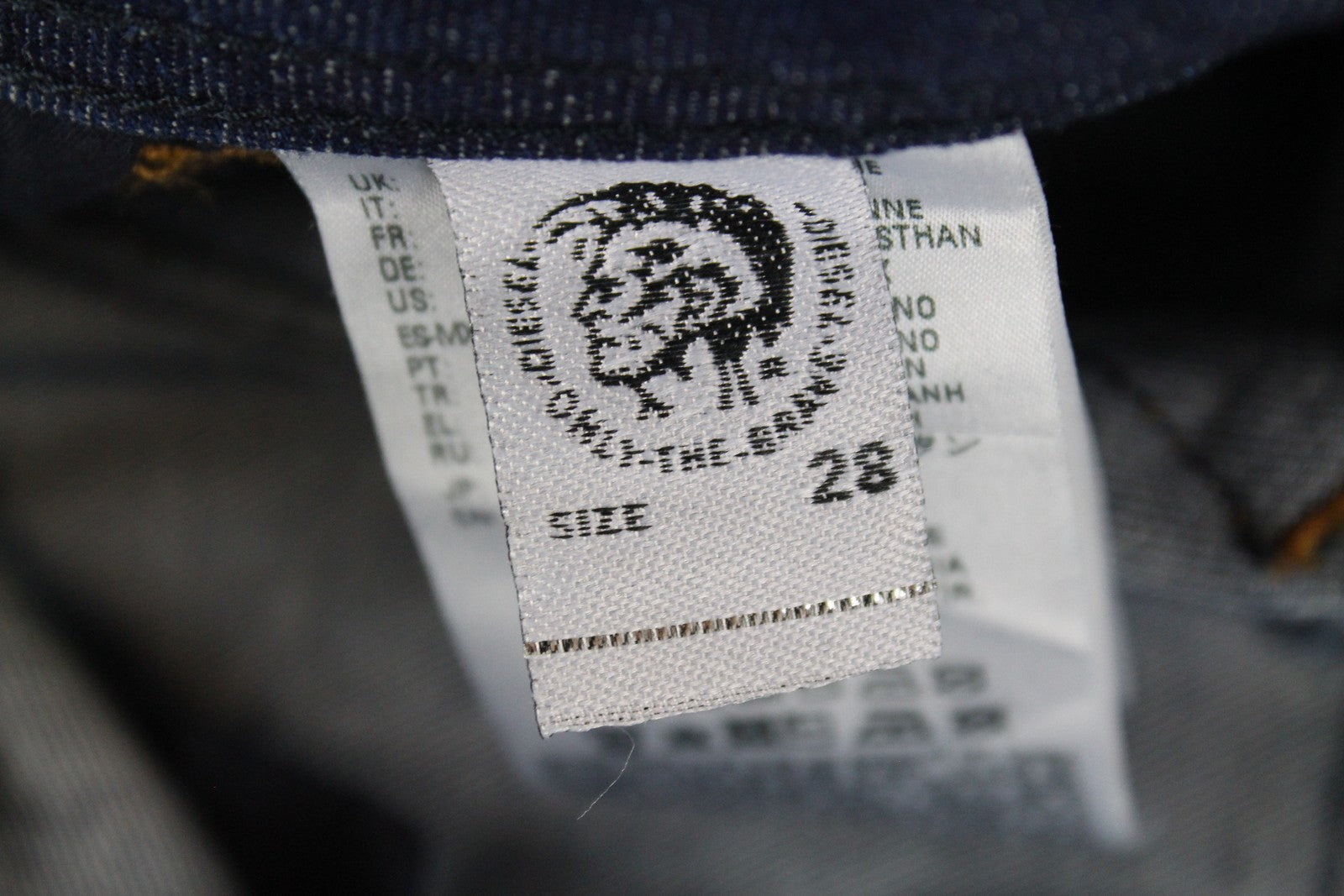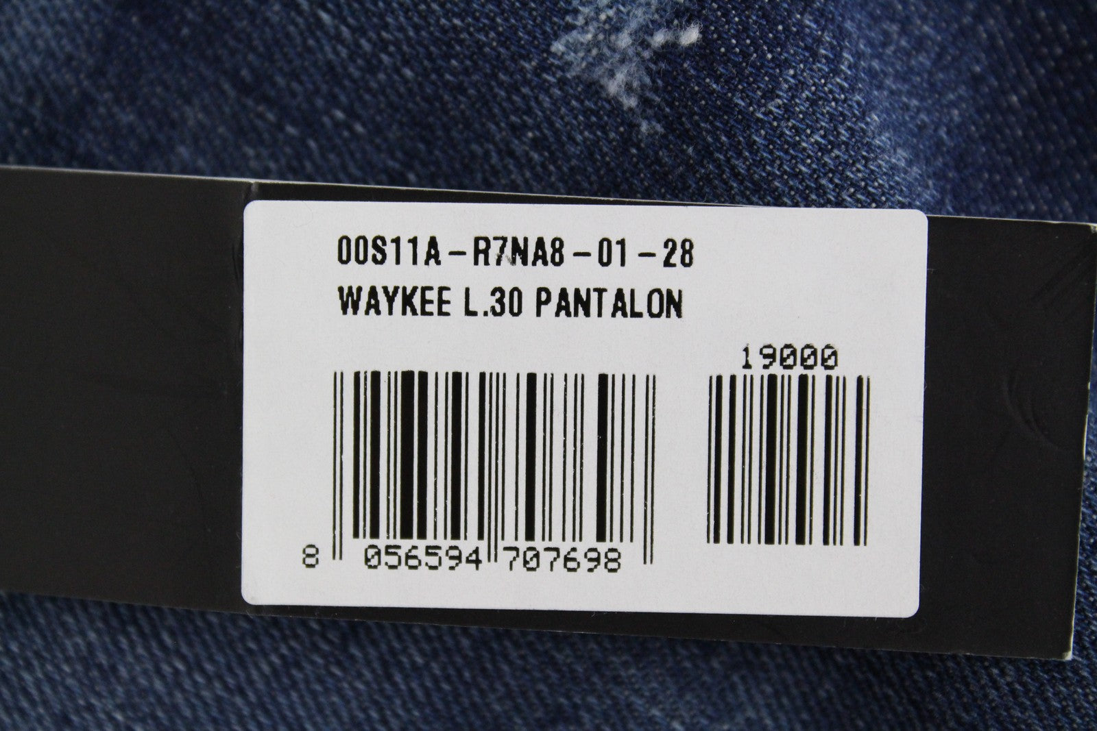DIESEL Waykee R7NA8 Men's Jeans W28/L30 Blue Cotton Stretch Ripped Straight Fit