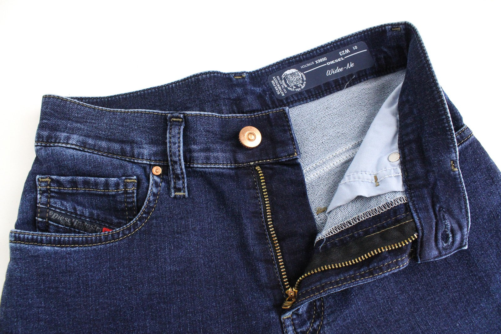 DIESEL Widee-NE 0686X moteriškos W23 trumpintos tiesios džinsinės kelnės mėlynos jogg sportinės