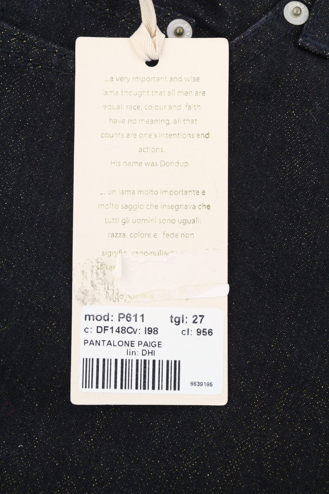 DONDUP moteriški džinsai 27 juodi, auksiniai, blizgučiai, plėšyti, trumpi, laisvi, RRP295