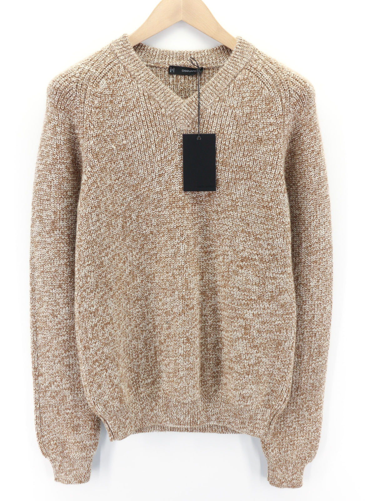 DSQUARED2 moteriškas megztinis ~S rudas grynos vilnos megztinis ilgomis rankovėmis su V formos iškirpte