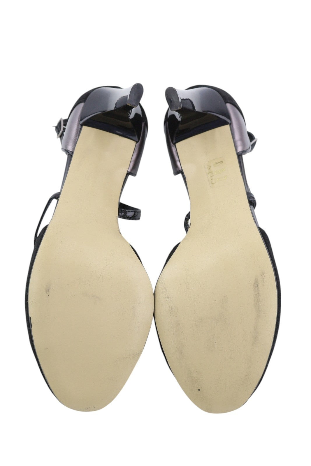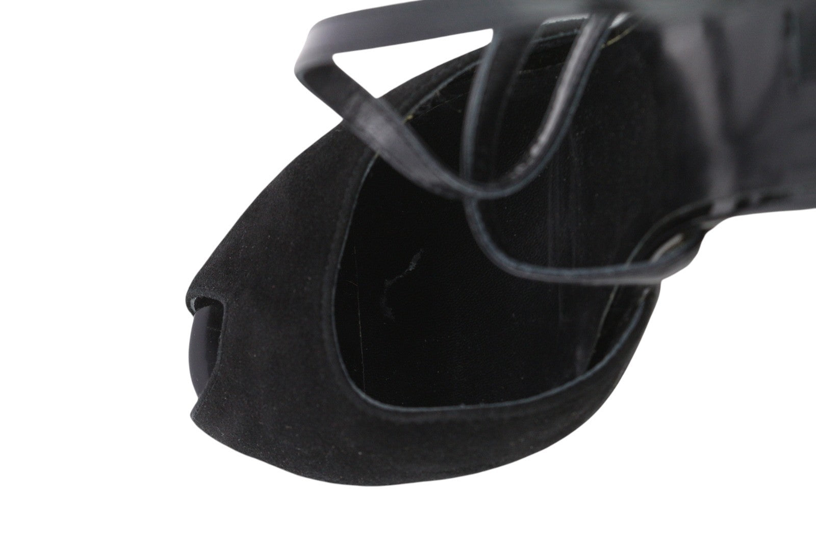 ELENA MIRO moteriški aukštakulniai, juodi, zomšiniai, odiniai, atviri pirštai, su dirželiais, blizgantys kulniukai, EU40.