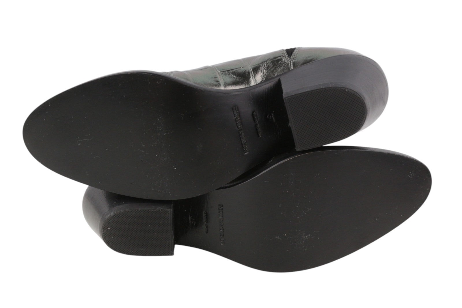 EMPORIO ARMANI moteriški aulinukai, 37 dydis, pilki, odiniai, tekstūruoti, migdolų nosys, kaubojiški, iki kulkšnies.