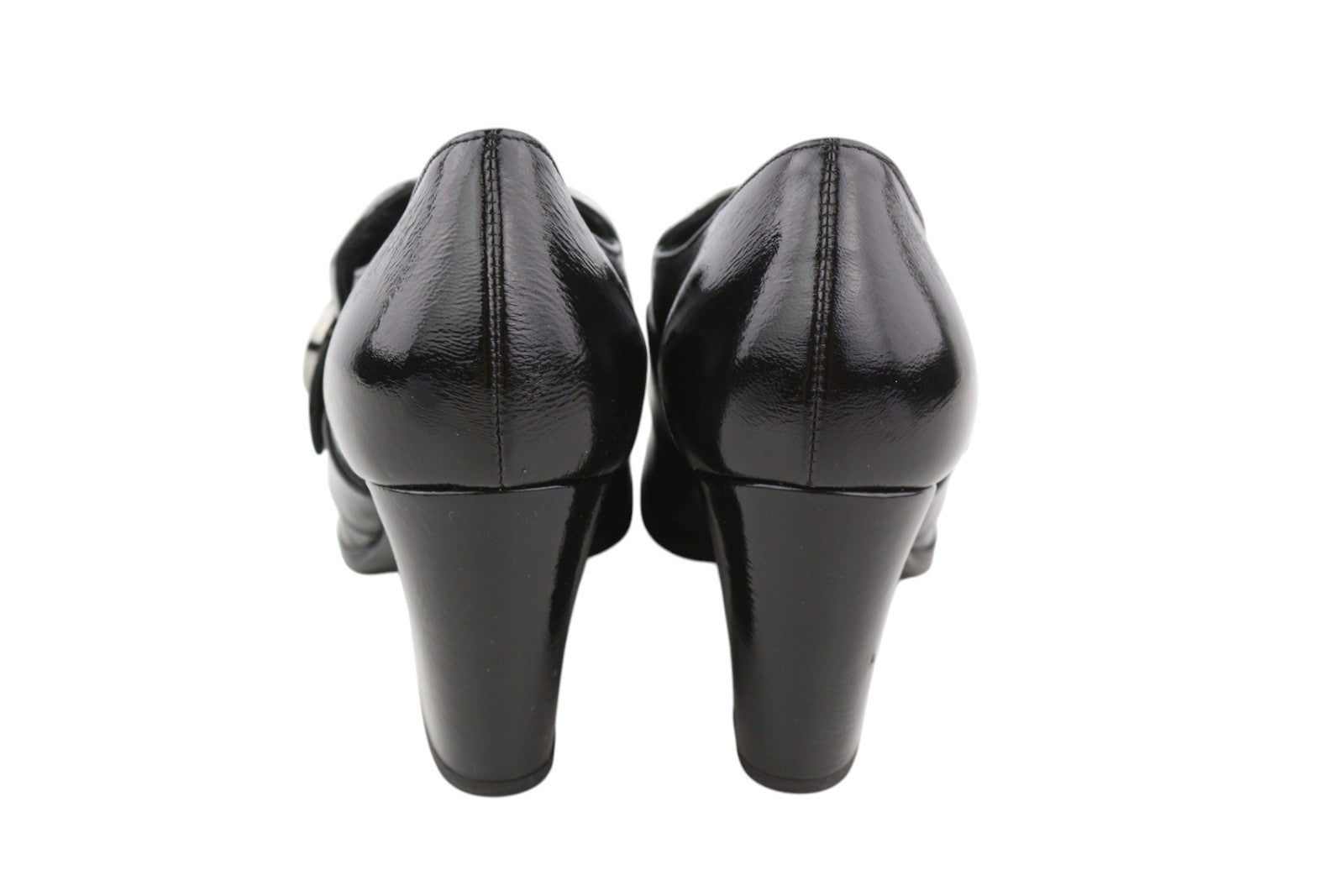EMPORIO ARMANI moteriški aukštakulniai, 37 €, juodi lakuotos odos kvadratinės nosies sagtimi