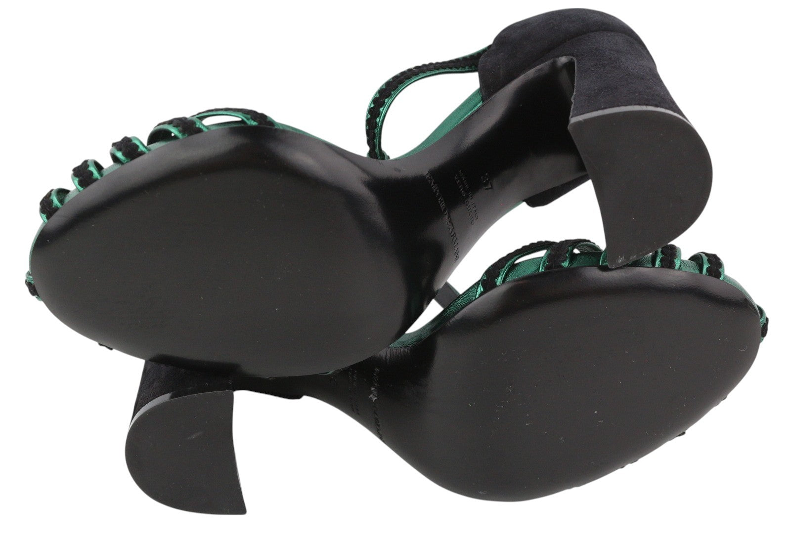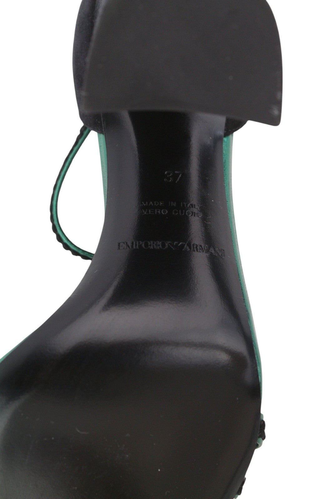 EMPORIO ARMANI moteriški aukštakulniai, 37 €, juodos zomšos, odinės, dirželiais sagtimis su sagtimi, basutės