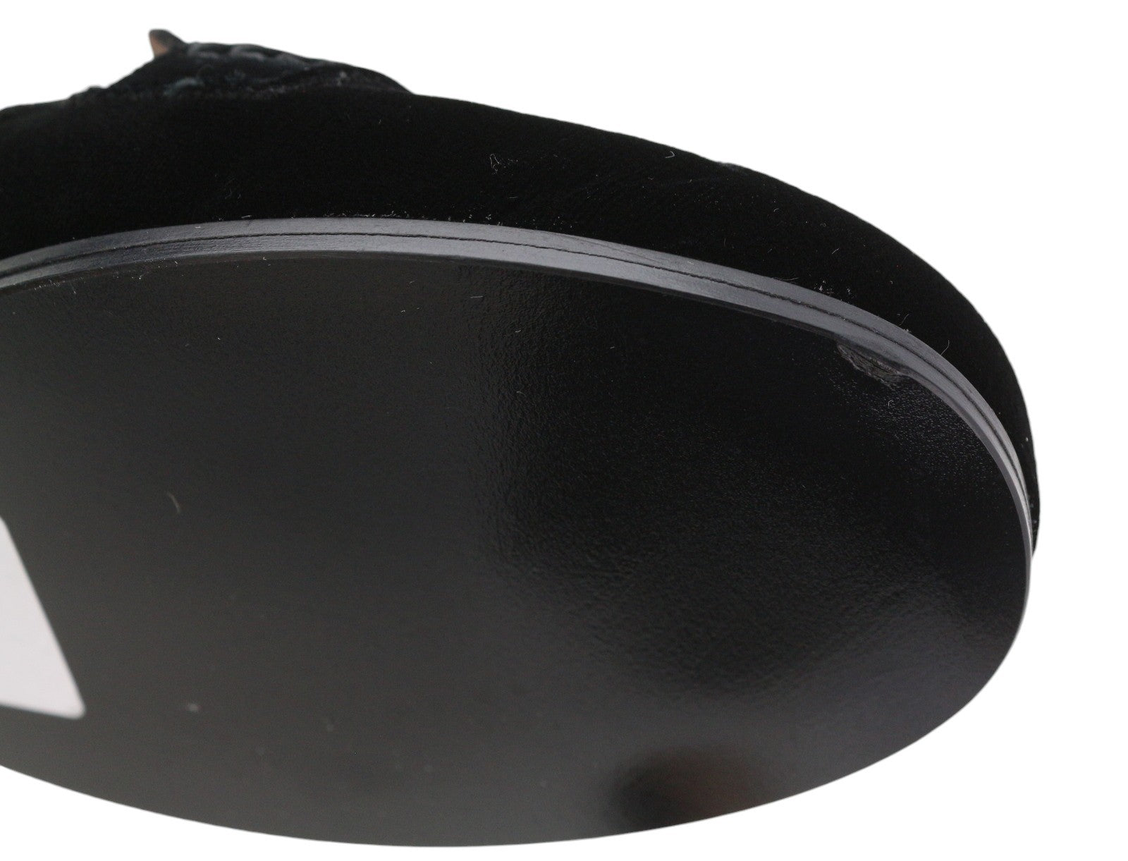 EMPORIO ARMANI X3A068 Women Flats EU37 Black Velvet Slip On Mule Sandals