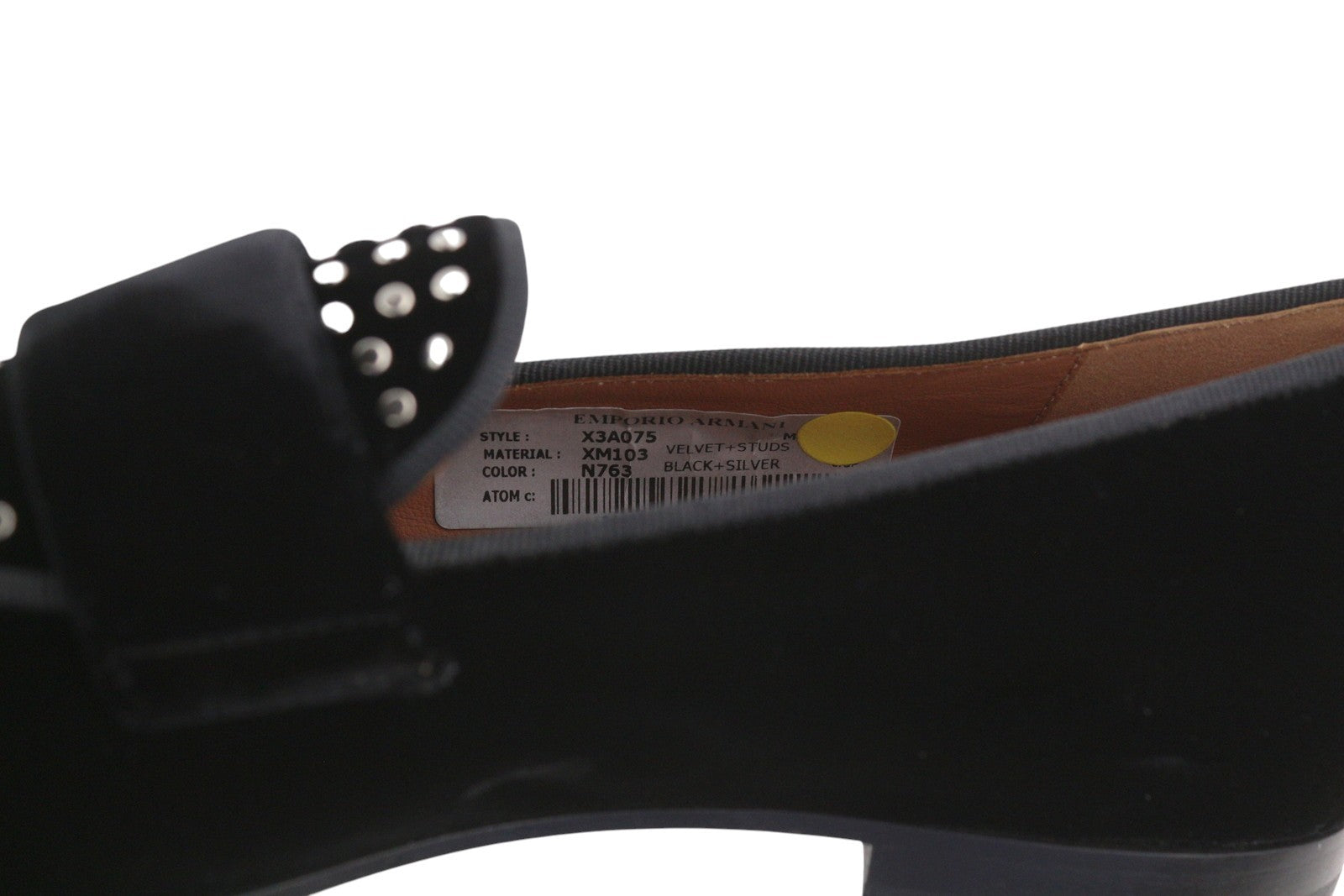 EMPORIO ARMANI X3A075 moteriški bateliai, 37 dydis, juodi, aksominiai, kvadratinės nosies, įmaunami bateliai.