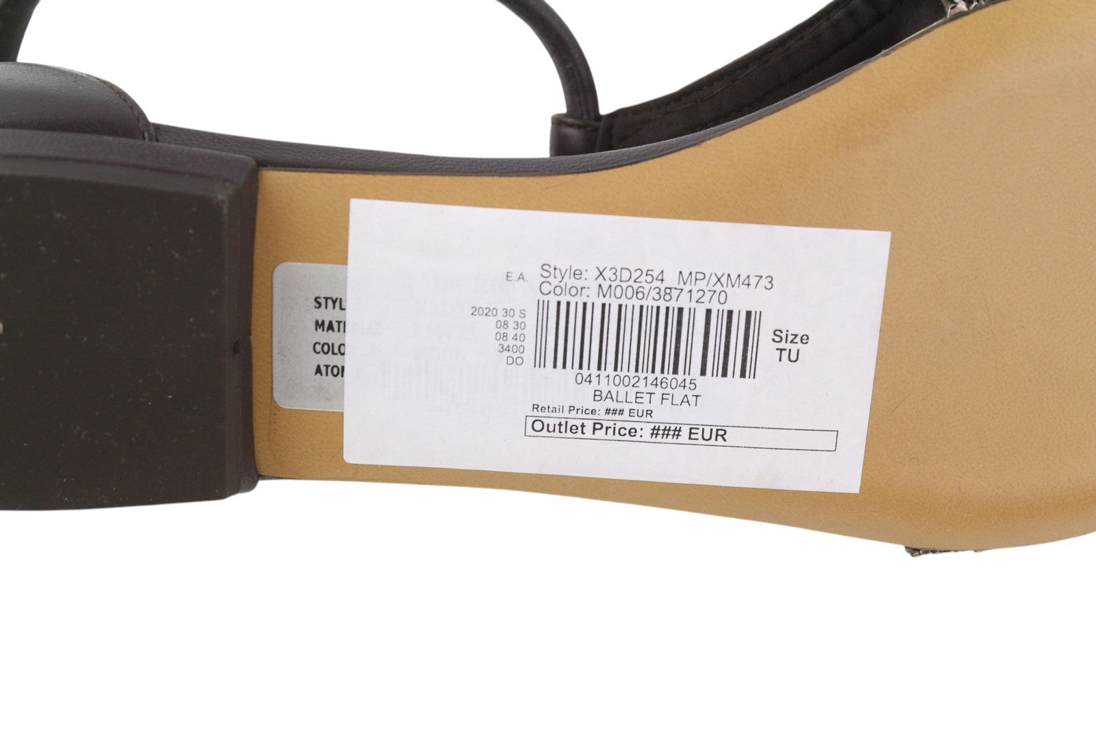 EMPORIO ARMANI X3D254 Women Flats EU37 Brown Shiny Pointed Toe Ballerina