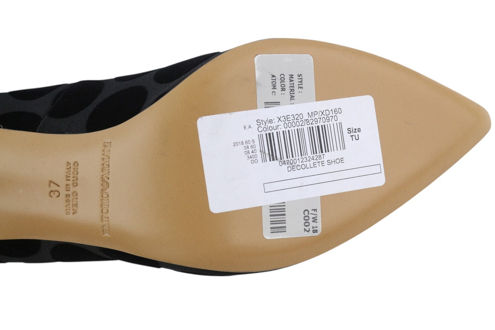 EMPORIO ARMANI X3E320 moteriški aukštakulniai, juodi taškuoti, su sagtimi ant nosies.