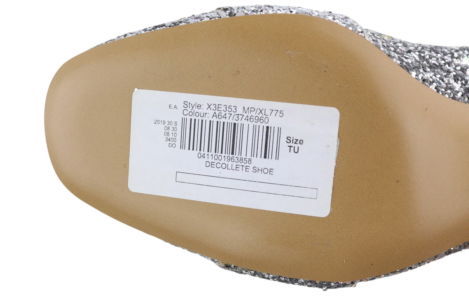 EMPORIO ARMANI X3E353 moteriški aukštakulniai, 37 dydžio, odiniai, blizgantys, sidabriniai, su iškirpte.