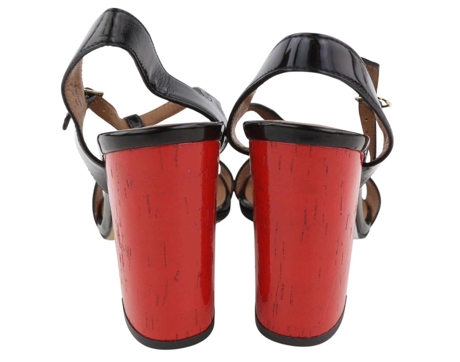 EMPORIO ARMANI X3P697 moteriški aukštakulniai, juodi, lakuotos odos, atviri, blokiniai aukštakulniai, EU37