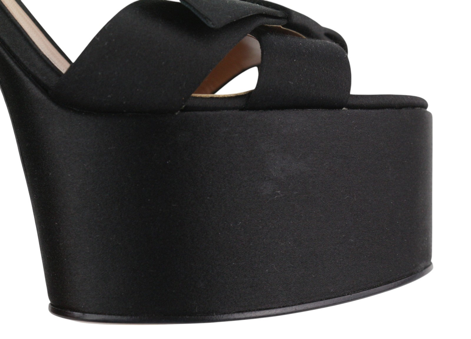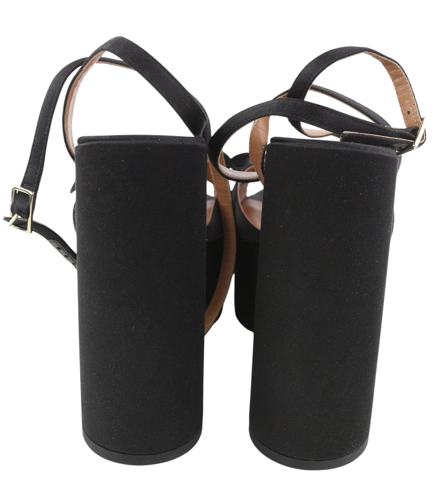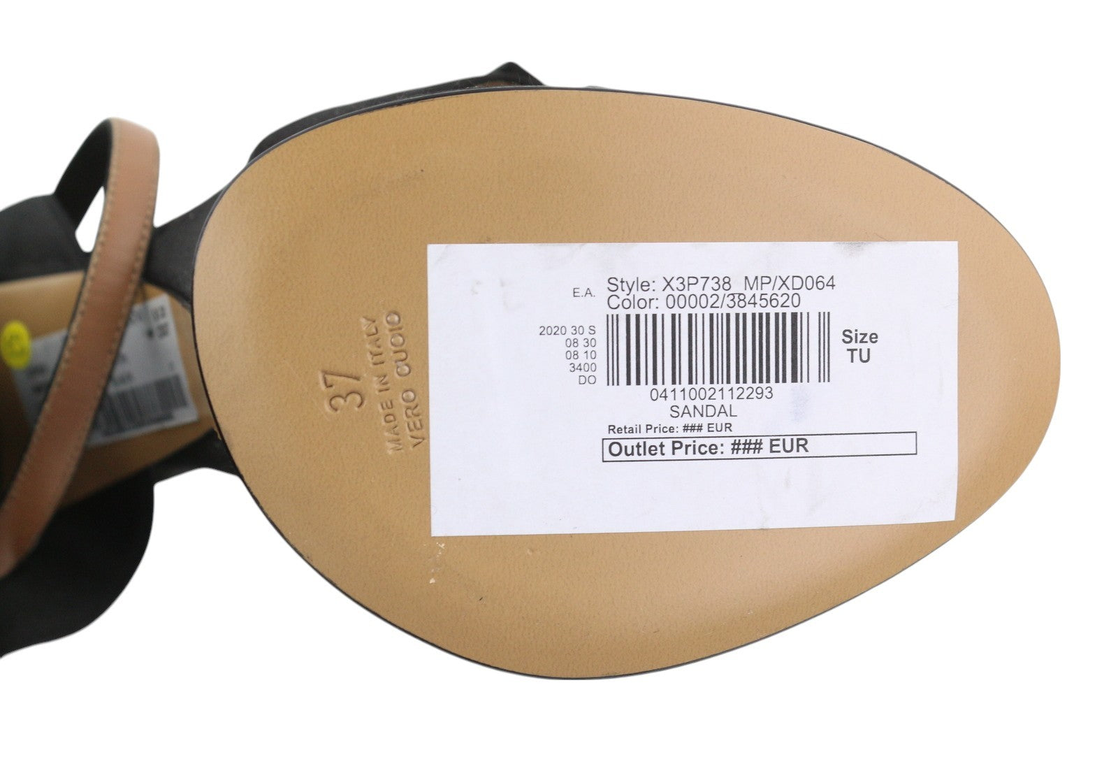 EMPORIO ARMANI X3P738 moteriški aukštakulniai EU37 juodos atlasinės atviros platformos basutės