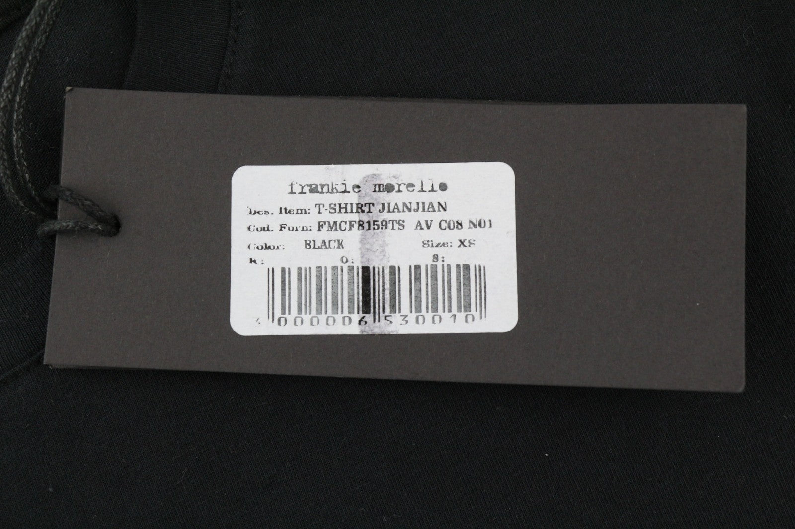 FRANKIE MORELLO Jianjian vyriški XS dydžio juodi medvilniniai marškinėliai trumpomis rankovėmis su grafiniu raštu
