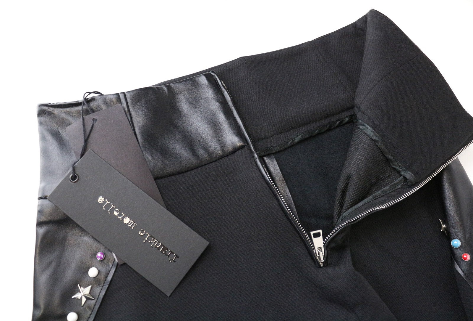 FRANKIE MORELLO Rog moteriškos kelnės 40 UK8 juodos dirbtinės odos kelnės su dygliais