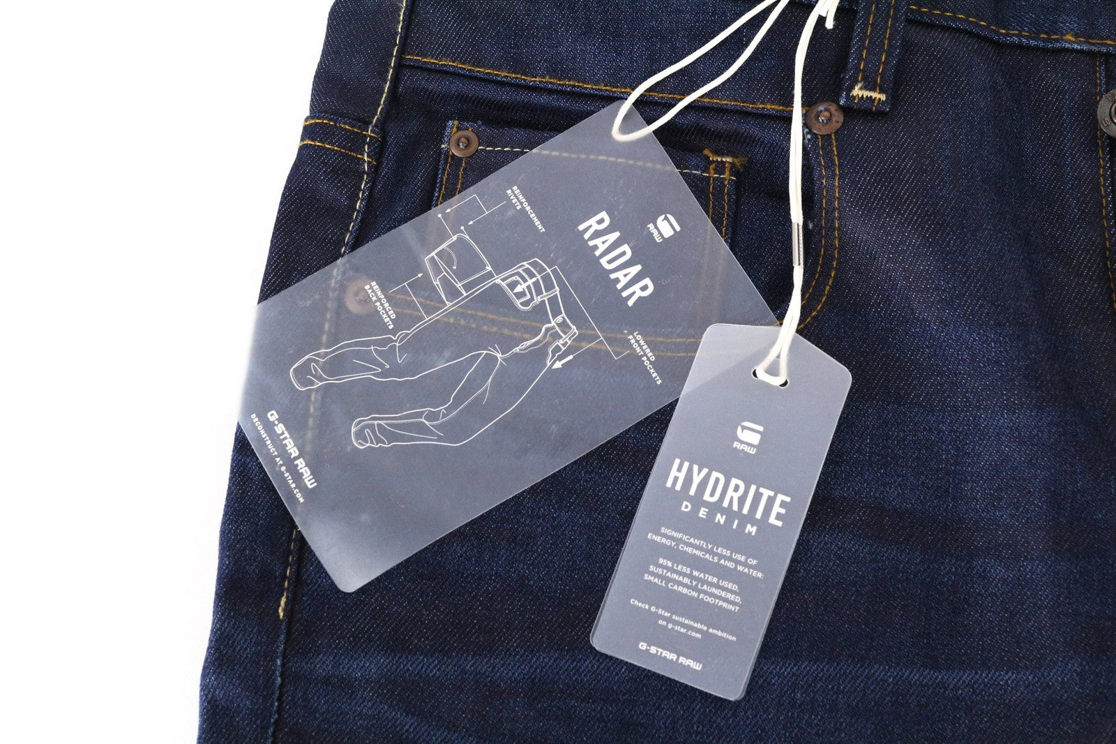 G-STAR Radar vyriški W28/L34 tamsiai mėlyni laisvo kirpimo, netempiami džinsai su sagomis