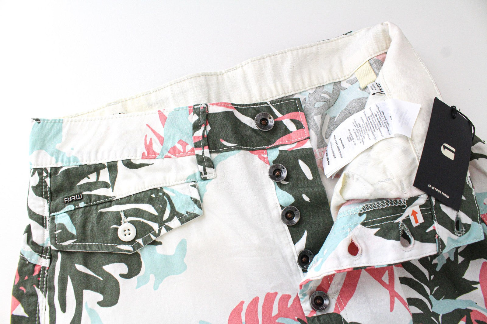 G-STAR RAW Army-S moteriškos kelnės W23/L34 baltos medvilninės siaurėjančios kelnės su lapų raštu