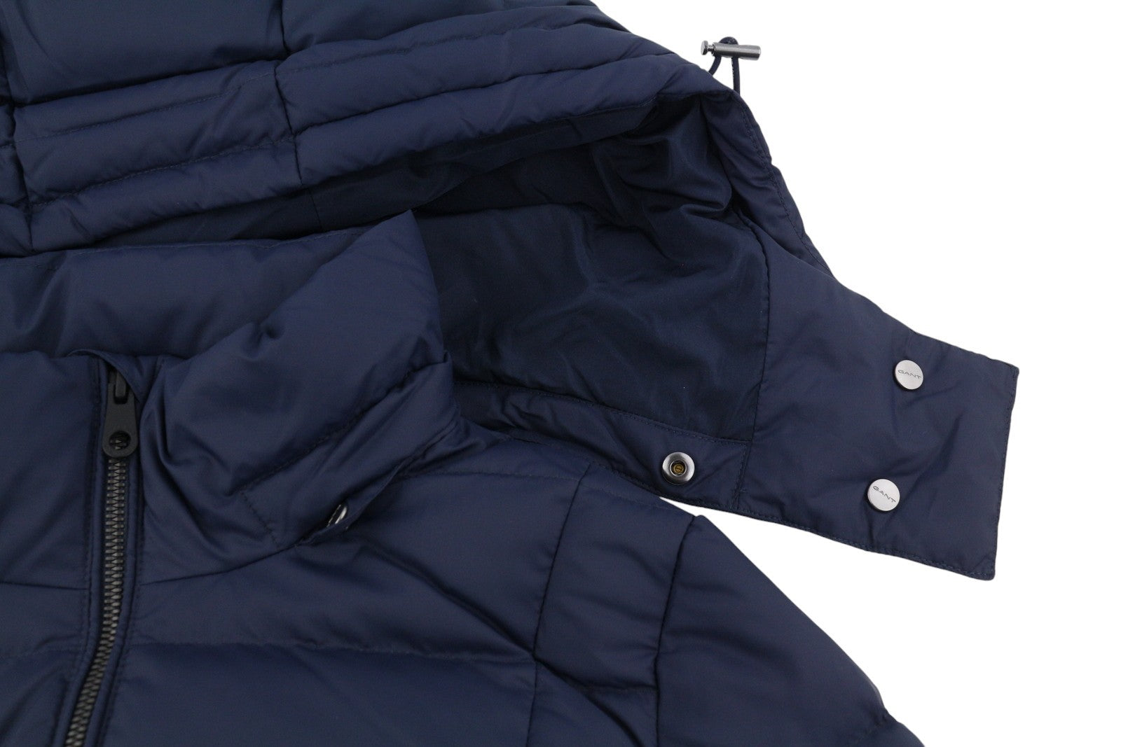 GANT Classic Down Long Women Jacket M Evening Blue Quilted Hood Coat