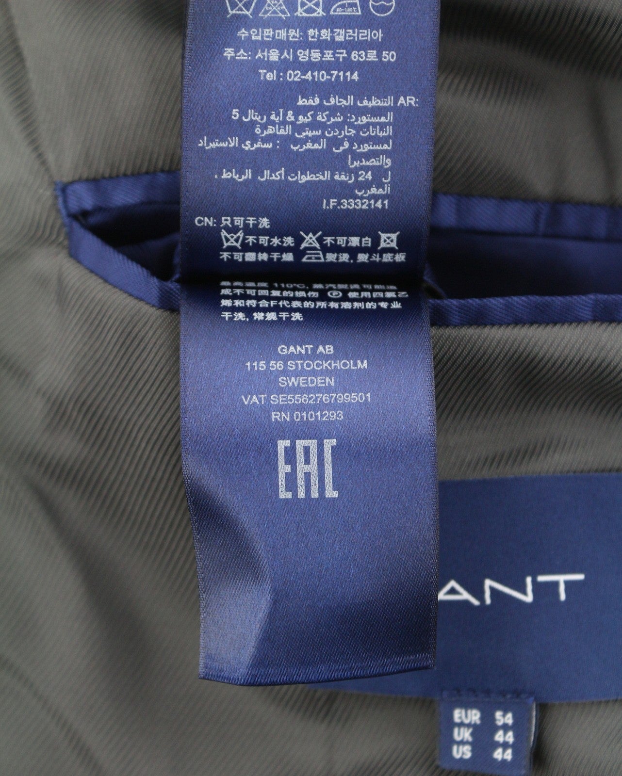 GANT flanelinis languotas vyriškas švarkas EU54 tamsiai pilko melanžo plonas vilnos mišinio švarkas su įpjova atvarte