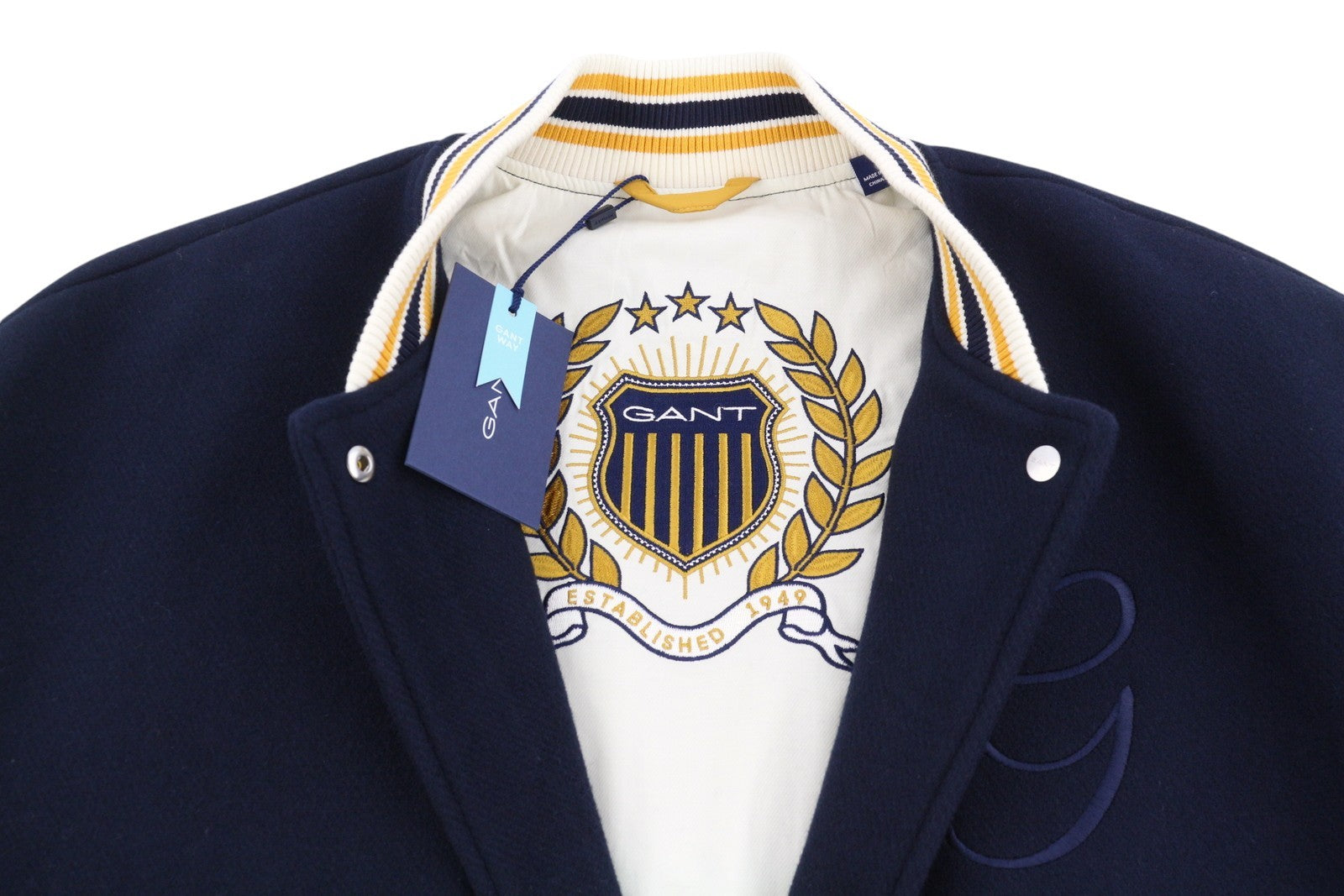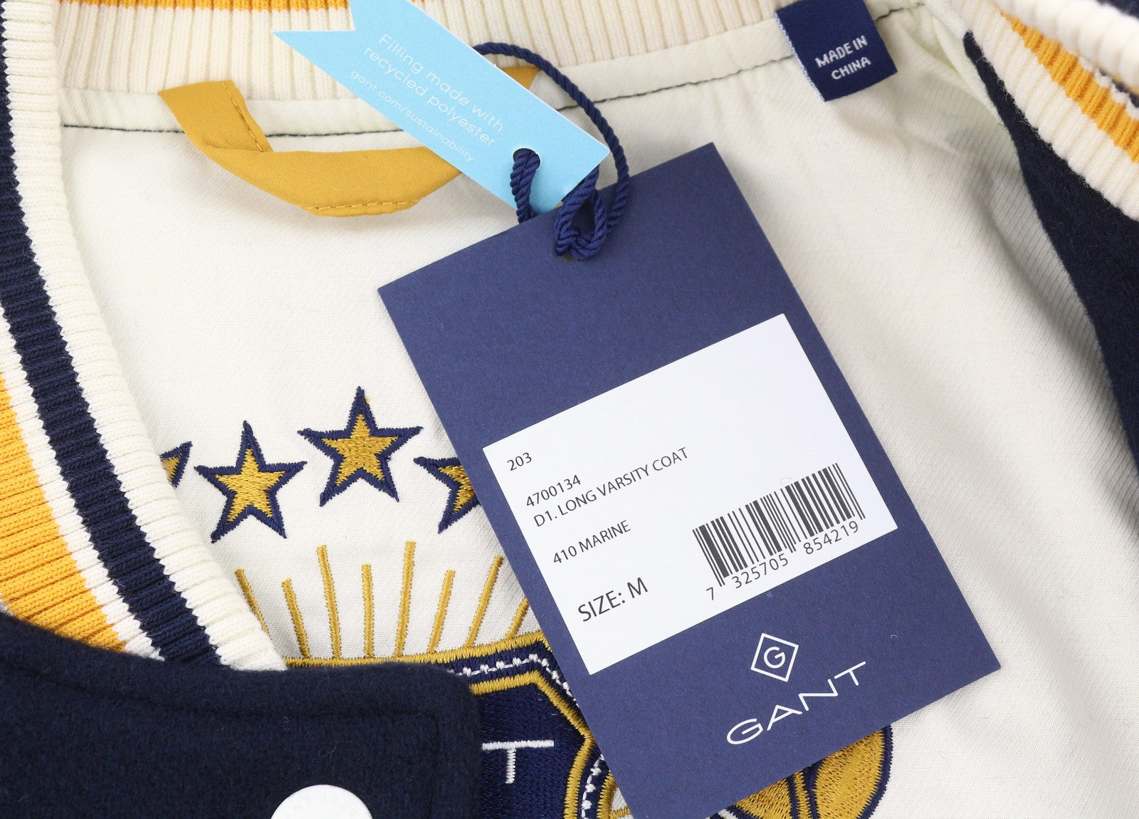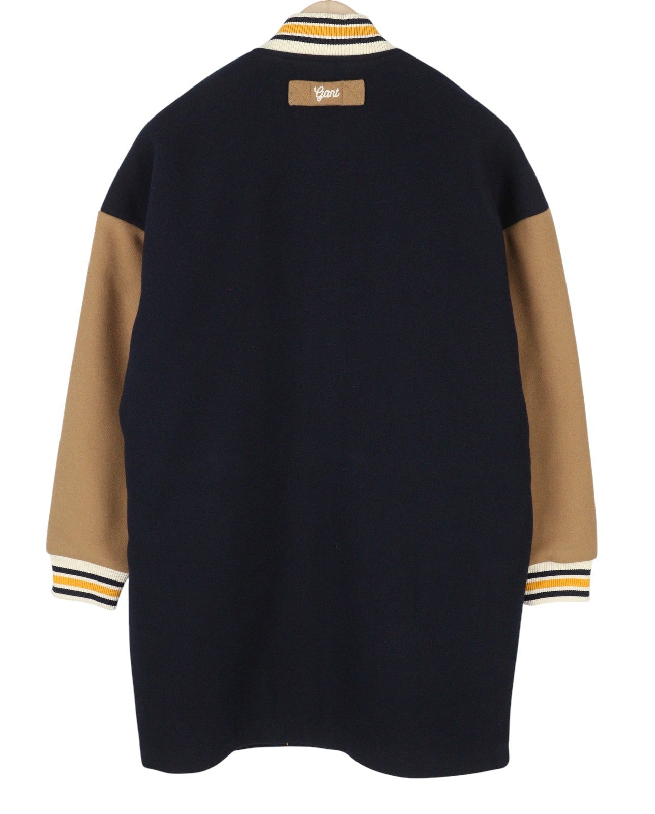 GANT ilgas moteriškas paltas M su tamsiai mėlyna vilnos mišinio izoliuota striuke su spaudėmis bomberyje