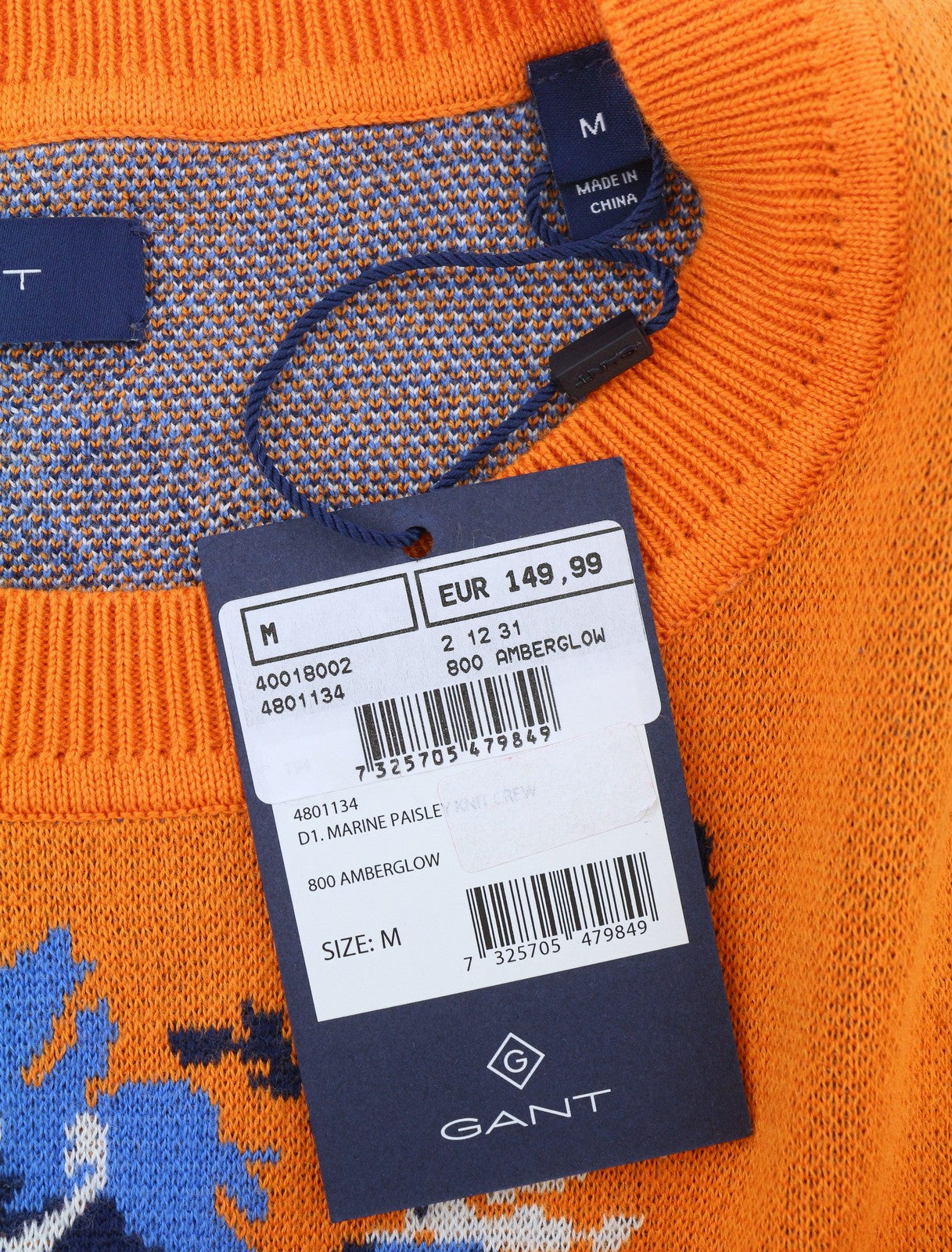 GANT Marine Paisley Knit Crew Women Jumper M Amberglow Floral Print Pullover