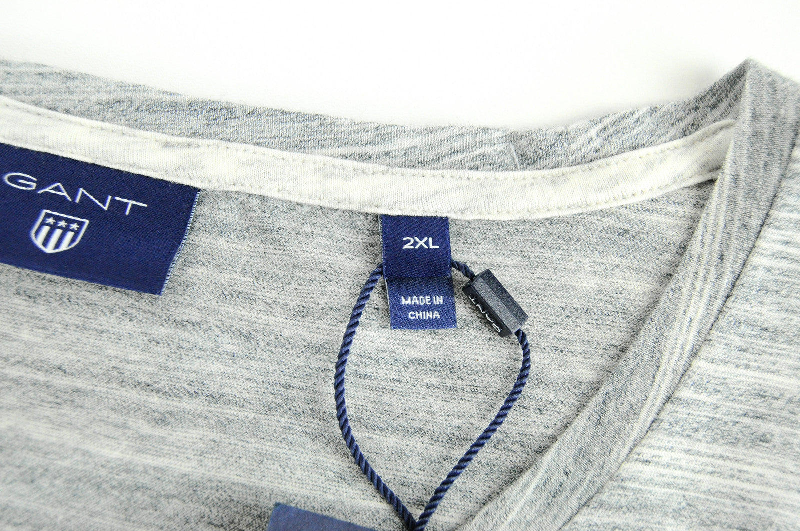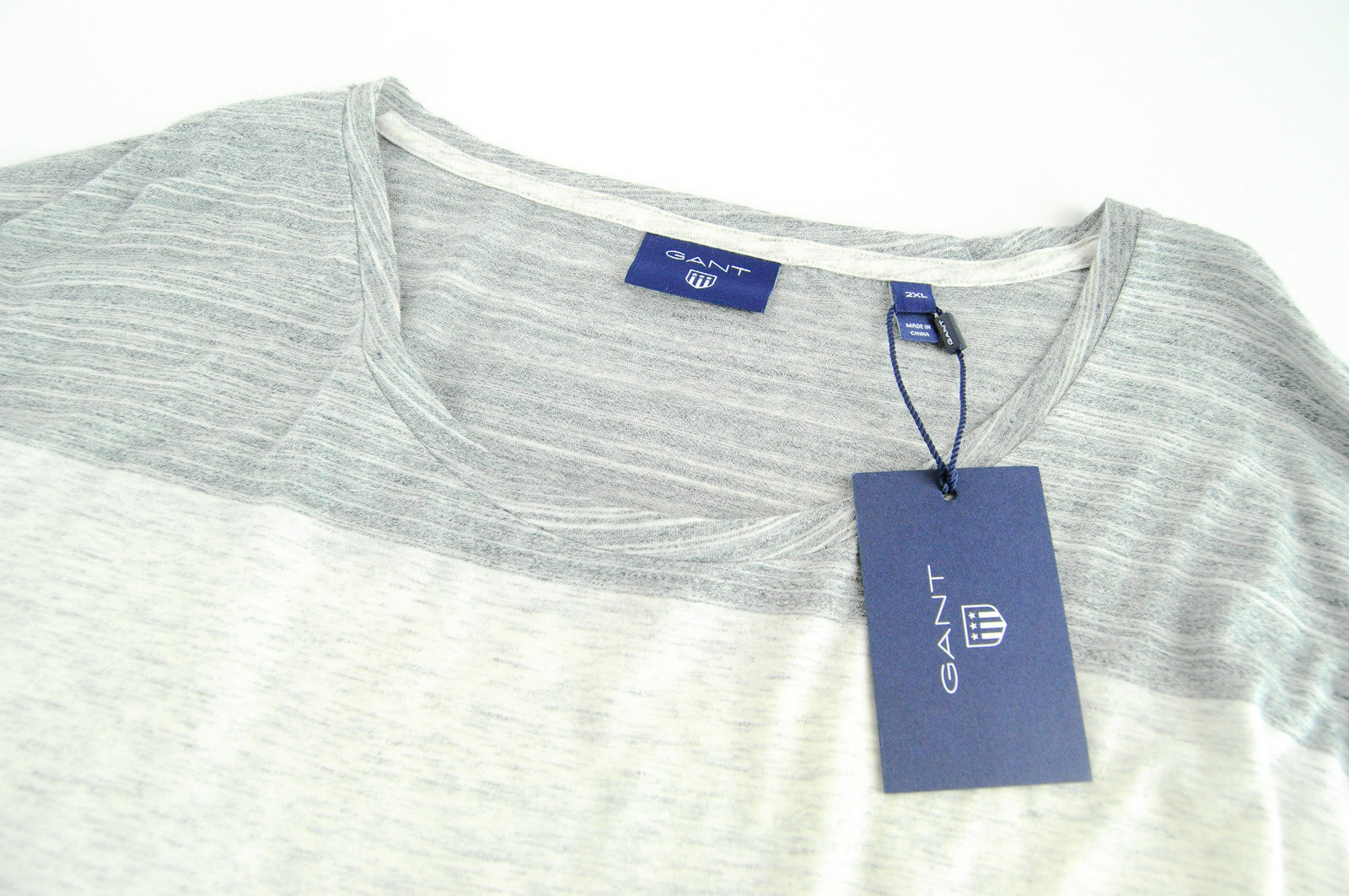 GANT vyriški marškinėliai su dryžiais, 2XL dydžio, vasariškai pilki melanžo spalvos, trumpomis rankovėmis.