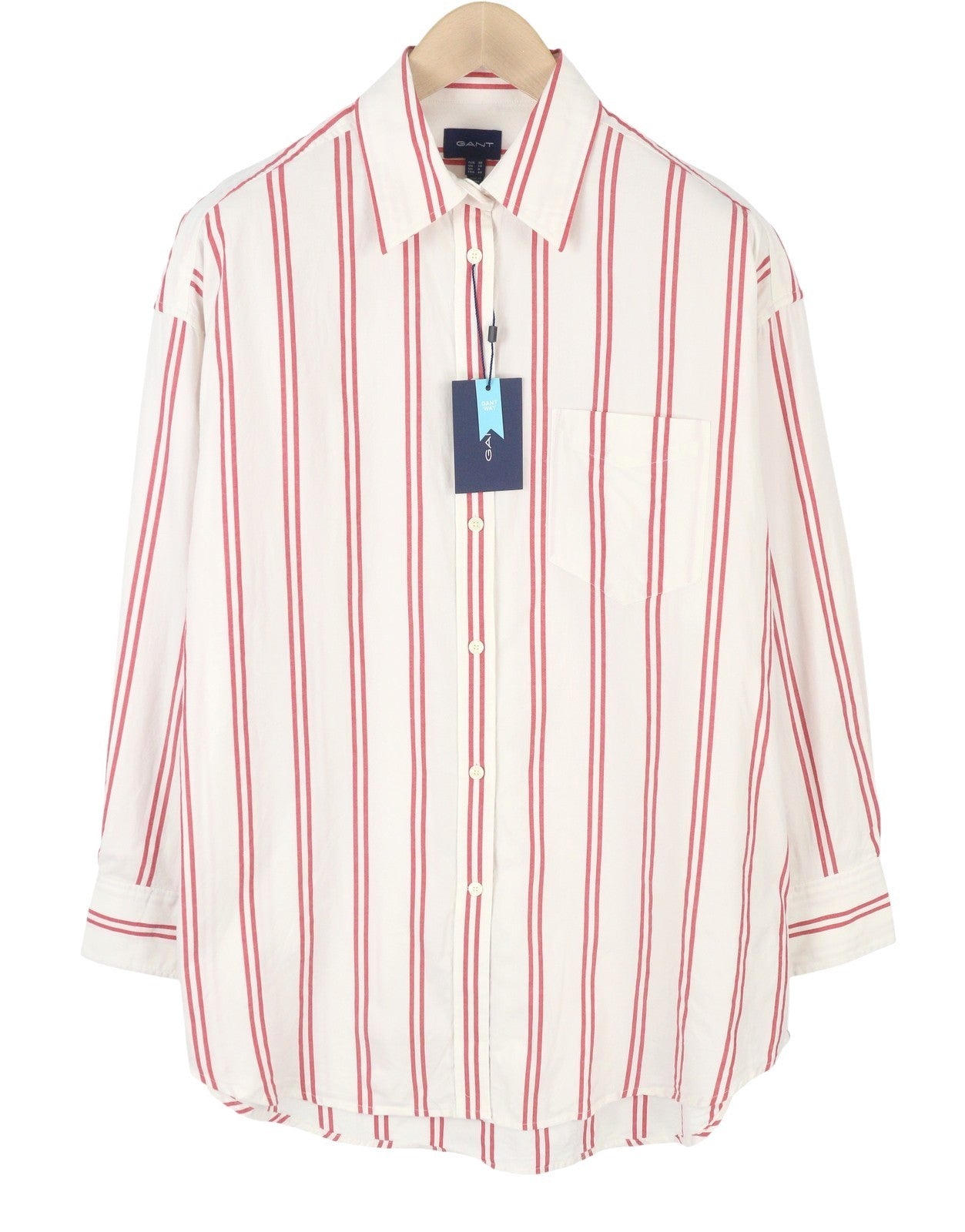 GANT OS Stripe Women Shirt EU38 Bricht Red Patch Pocket Button-Up Casual