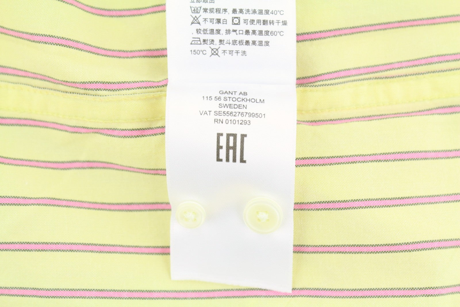 GANT Rel Oxford Stripe vyriški marškinėliai S, citrininė spalva, sagomis užsegama apykakle, užlopytomis kišenėmis, laisvalaikio stilius