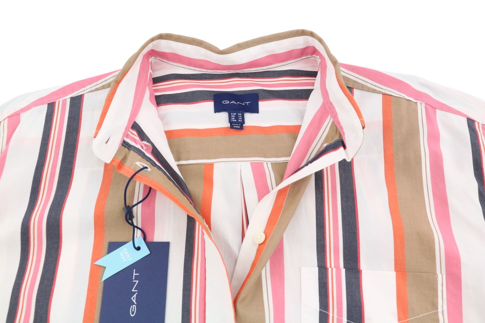 GANT laisvalaikio marškinėliai su dryžiais, 40 dydžio, kiaušinio lukšto formos, su sagomis apačioje, dideli laisvi marškinėliai