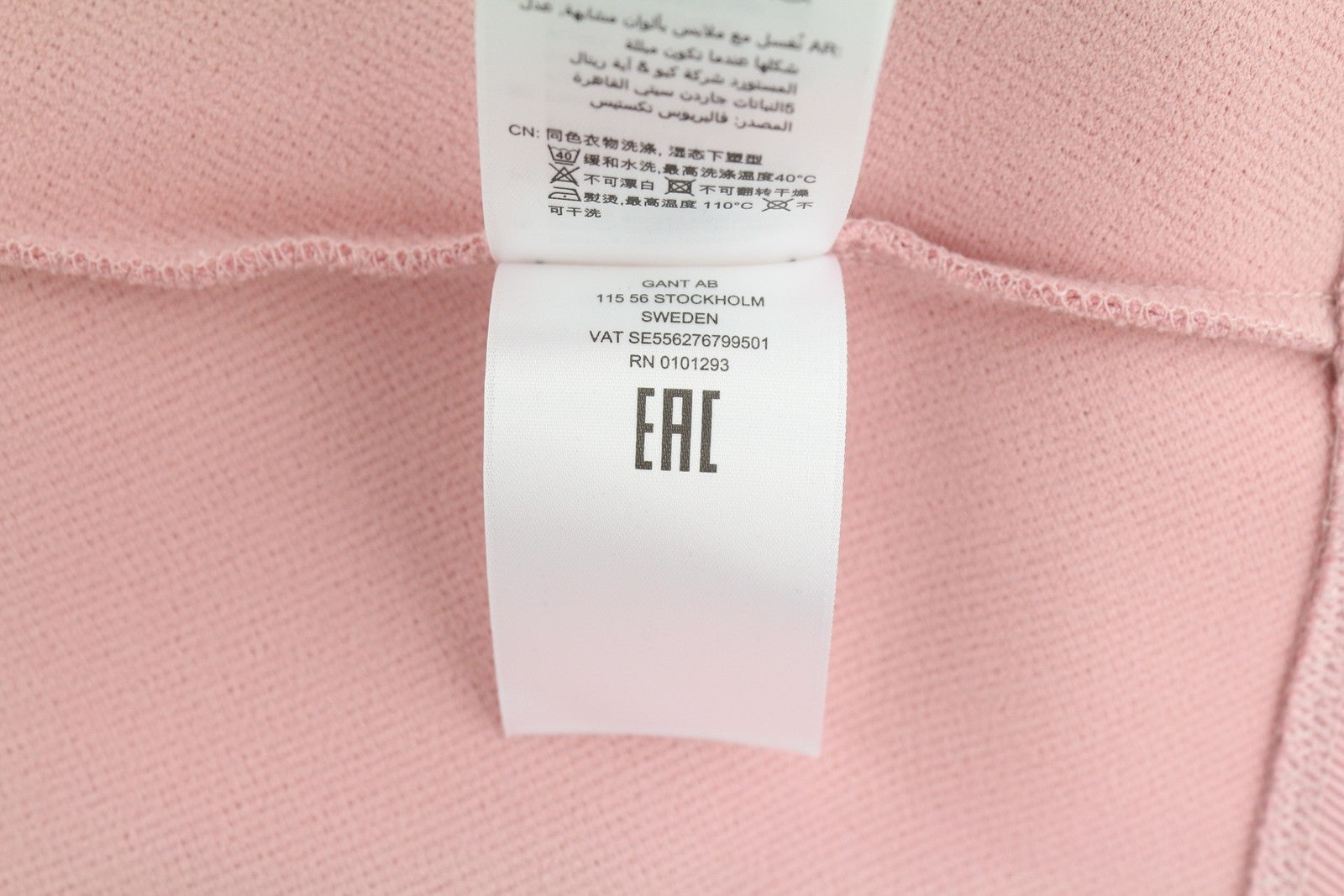 GANT „Rib Structure“ moteriška suknelė, XS, rožinė, trumpomis rankovėmis, tampri, V formos iškirpte, iki kelių.