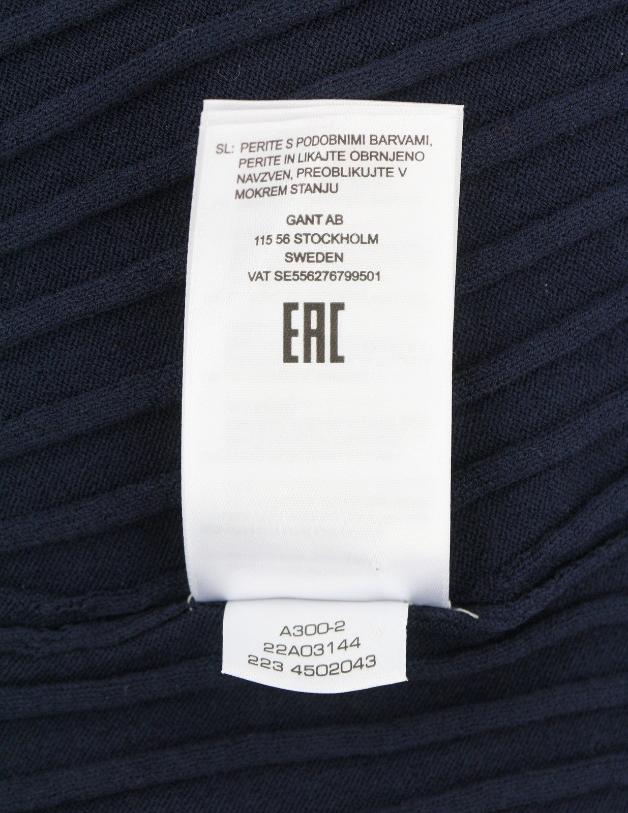 GANT Ribbed C-Neck Women Dress M Evening Blue Navy Knitted Midi Long Sleeve