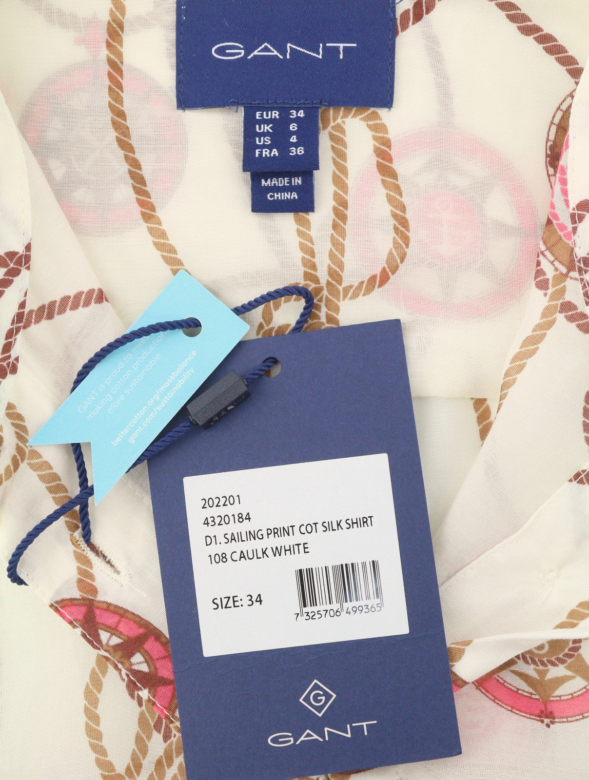 GANT Sailing Print Cot Silk Women Shirt EU34 Caulk White Transparent Button-up